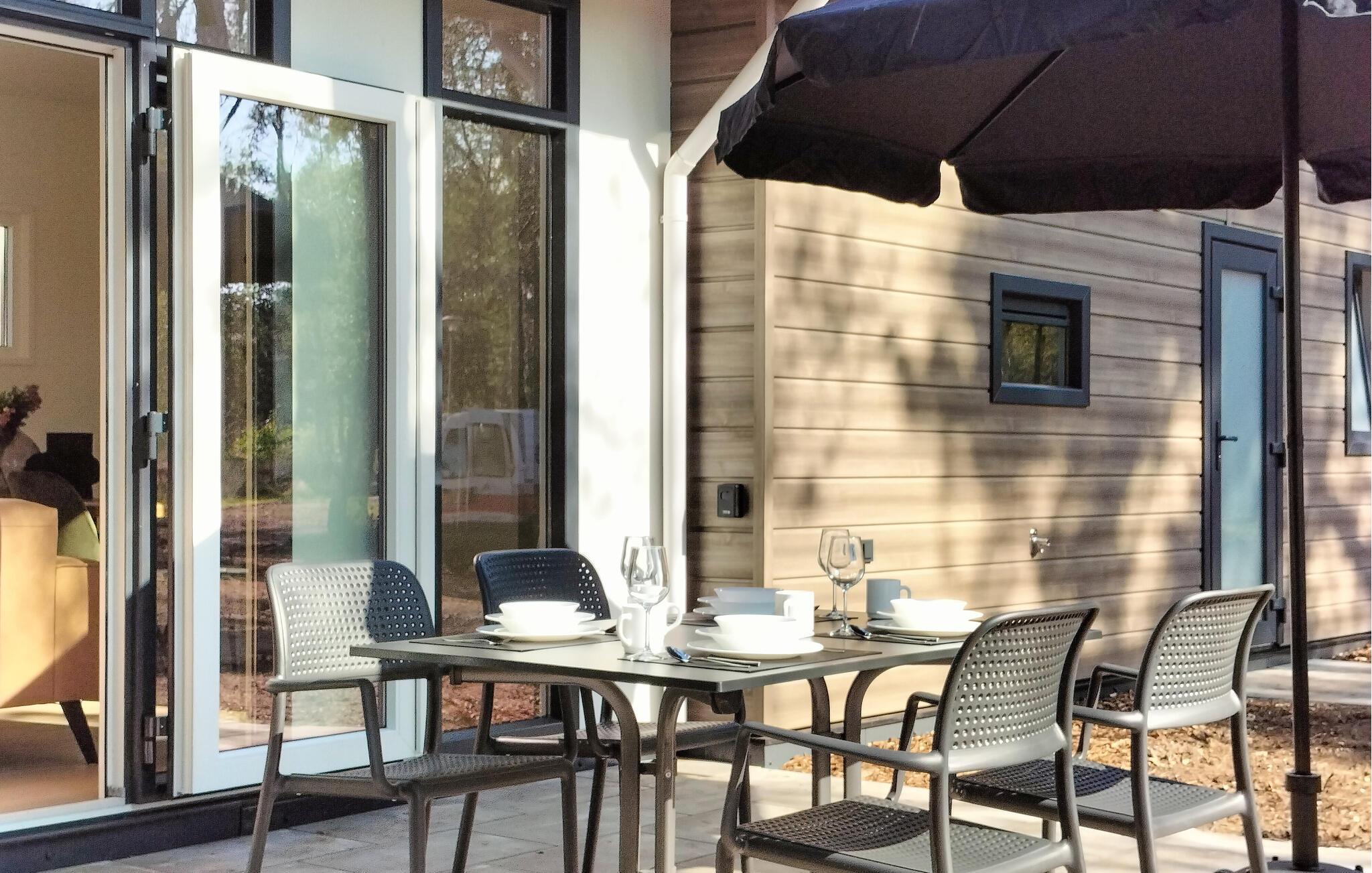 Oplev dette moderne feriehus i en rolig og smukt beliggende feriepark.