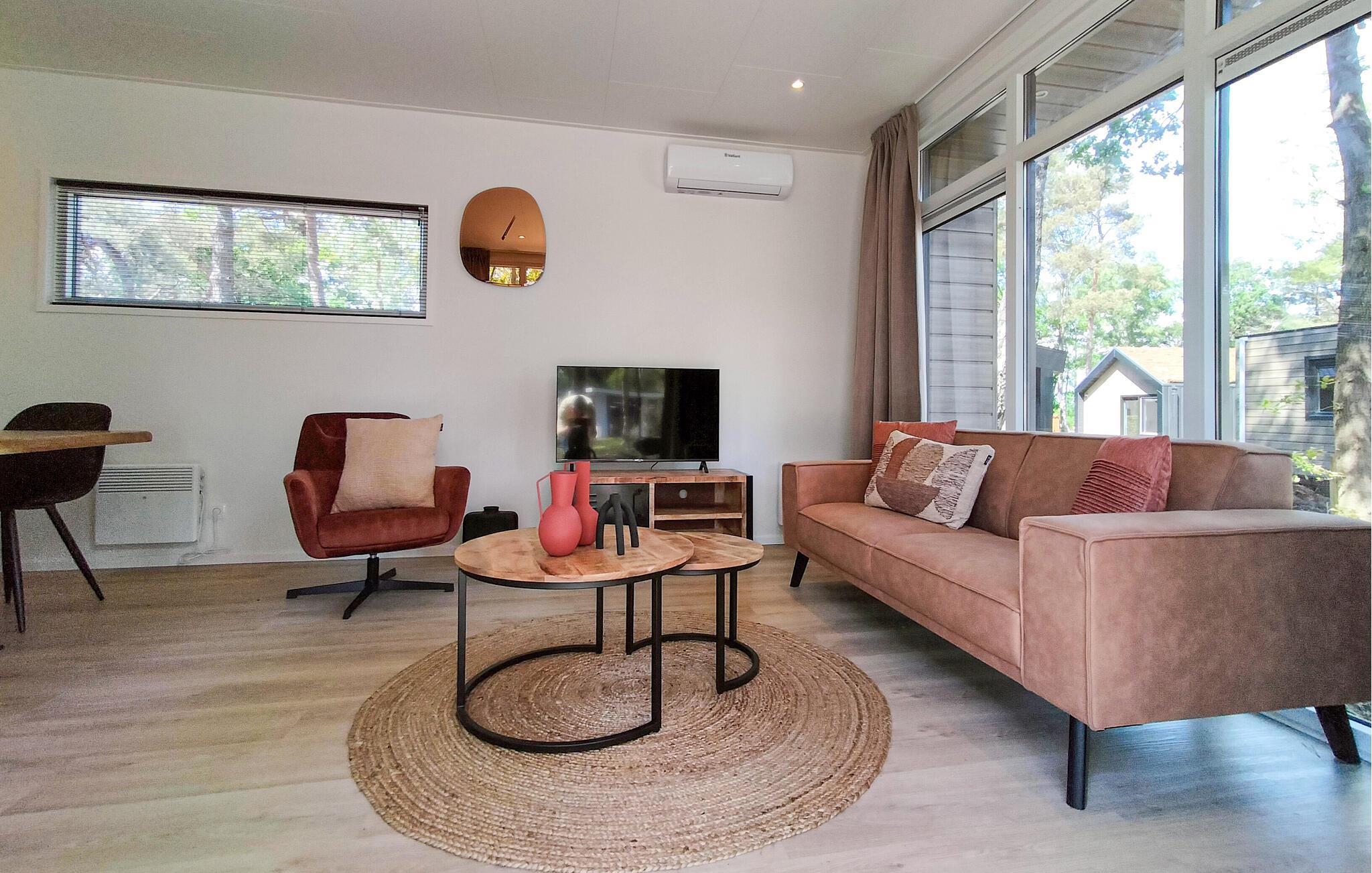 Dette feriehus ligger i en lille skov, omgivet af smukke enge, i en feriepark. Det ligger i udkanten af ??Sallandse Heuvelrug Nationalpark og tæt på Hellendoorn Adventure Park. I umiddelbar nærhed finder I vidunderlige cykelstier og -stier, hvor I kan gå og nyde de idylliske omgivelser. Besøg Hellendoorn Adventure Park, som tilbyder spændende attraktioner for børn og voksne. Oplev den smukke natur i Sallandse Heuvelrug Nationalpark, som byder på ideelle vandre- og cykelstier gennem et varieret landskab. Oplev Ommens historiske centrum eller tag en dagstur til Zwolle, hvor I kan udforske de maleriske gader og interessante museer.