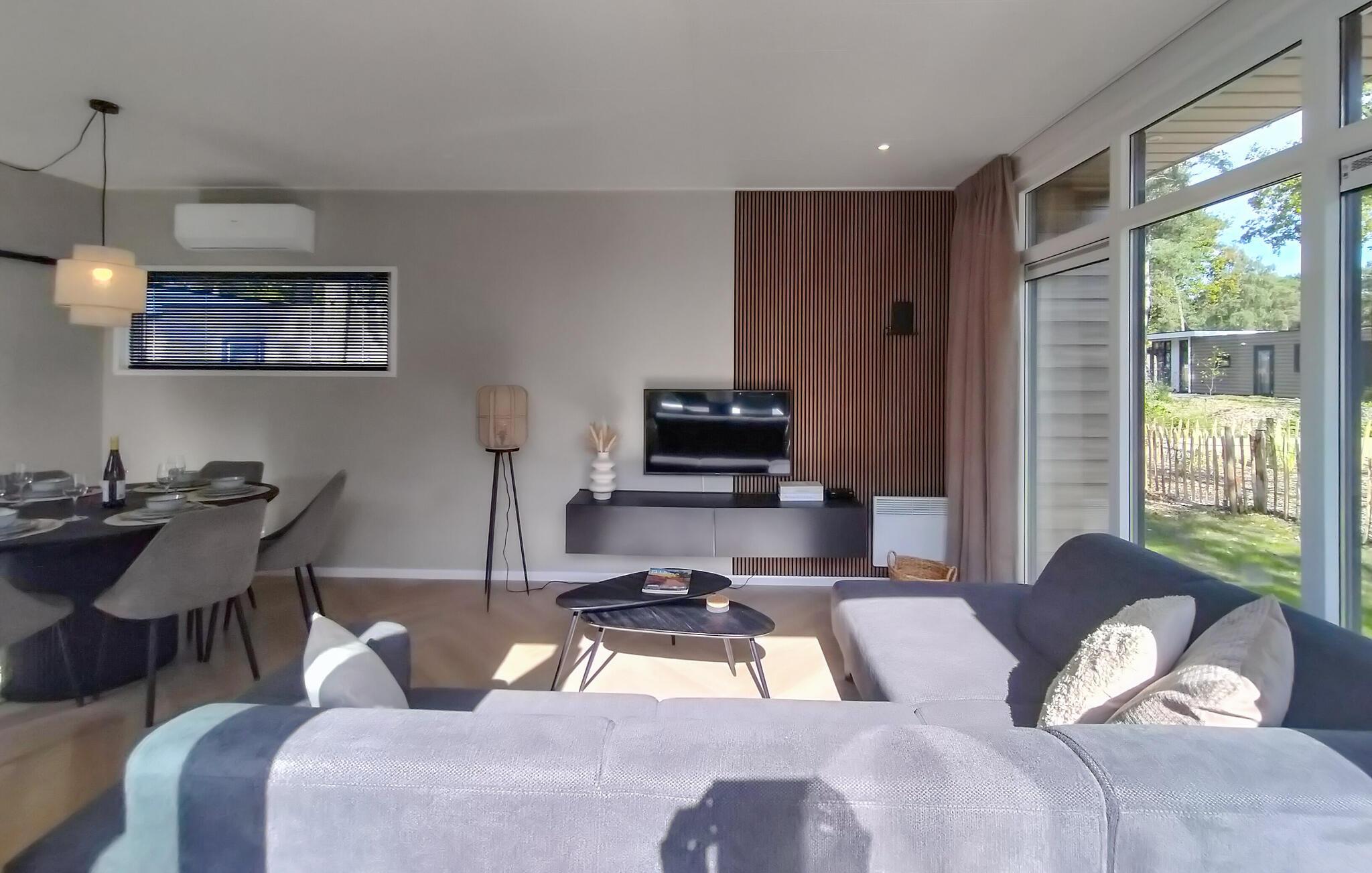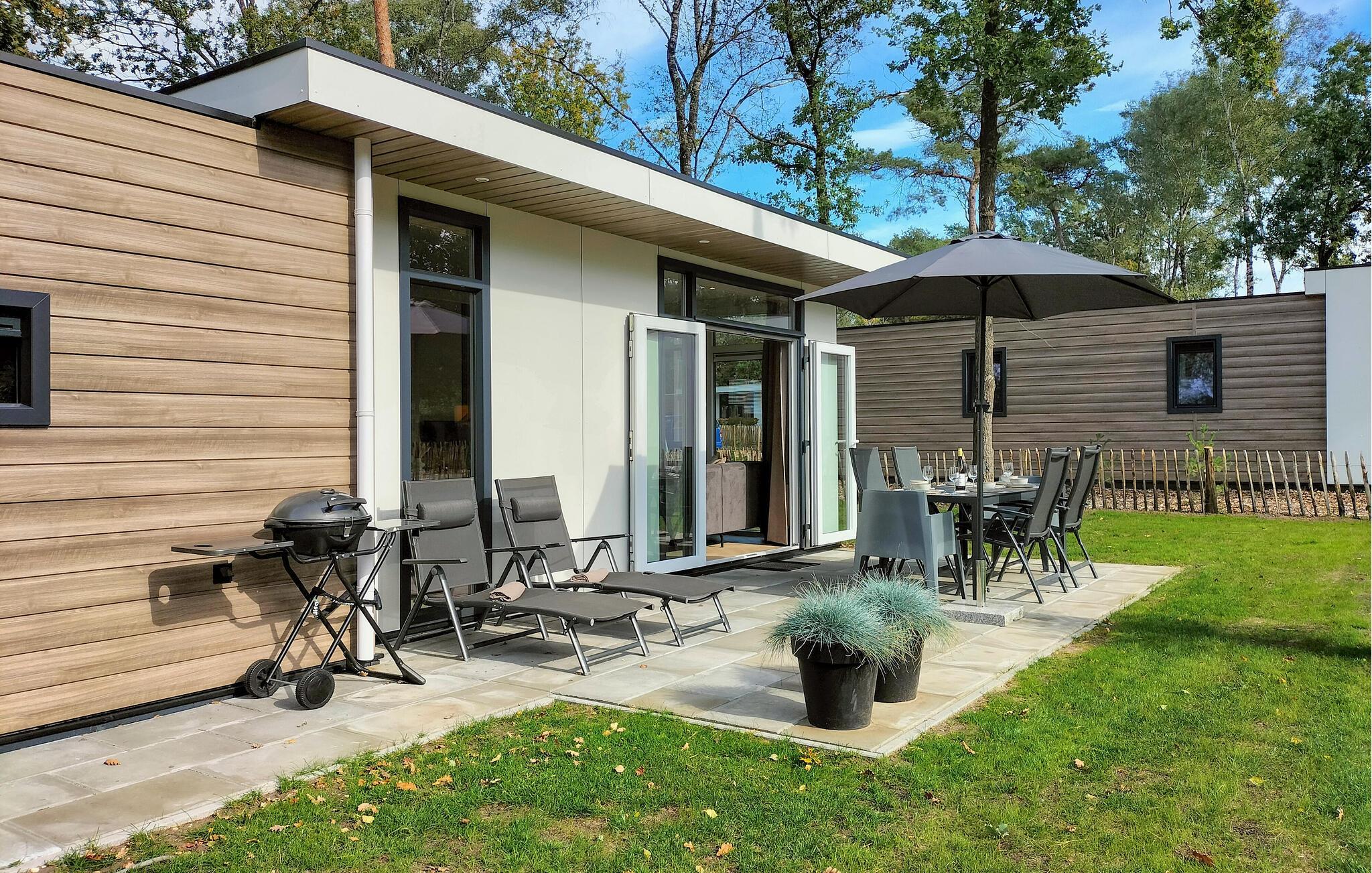 Dette feriehus ligger i en feriepark i en lille skov, omgivet af smukke enge, i udkanten af Sallandse Heuvelrug Nationalpark og tæt på Hellendoorn Adventure Park. I umiddelbar nærhed finder I vidunderlige cykelruter og -stier, hvor I kan slentre og nyde de idylliske omgivelser.