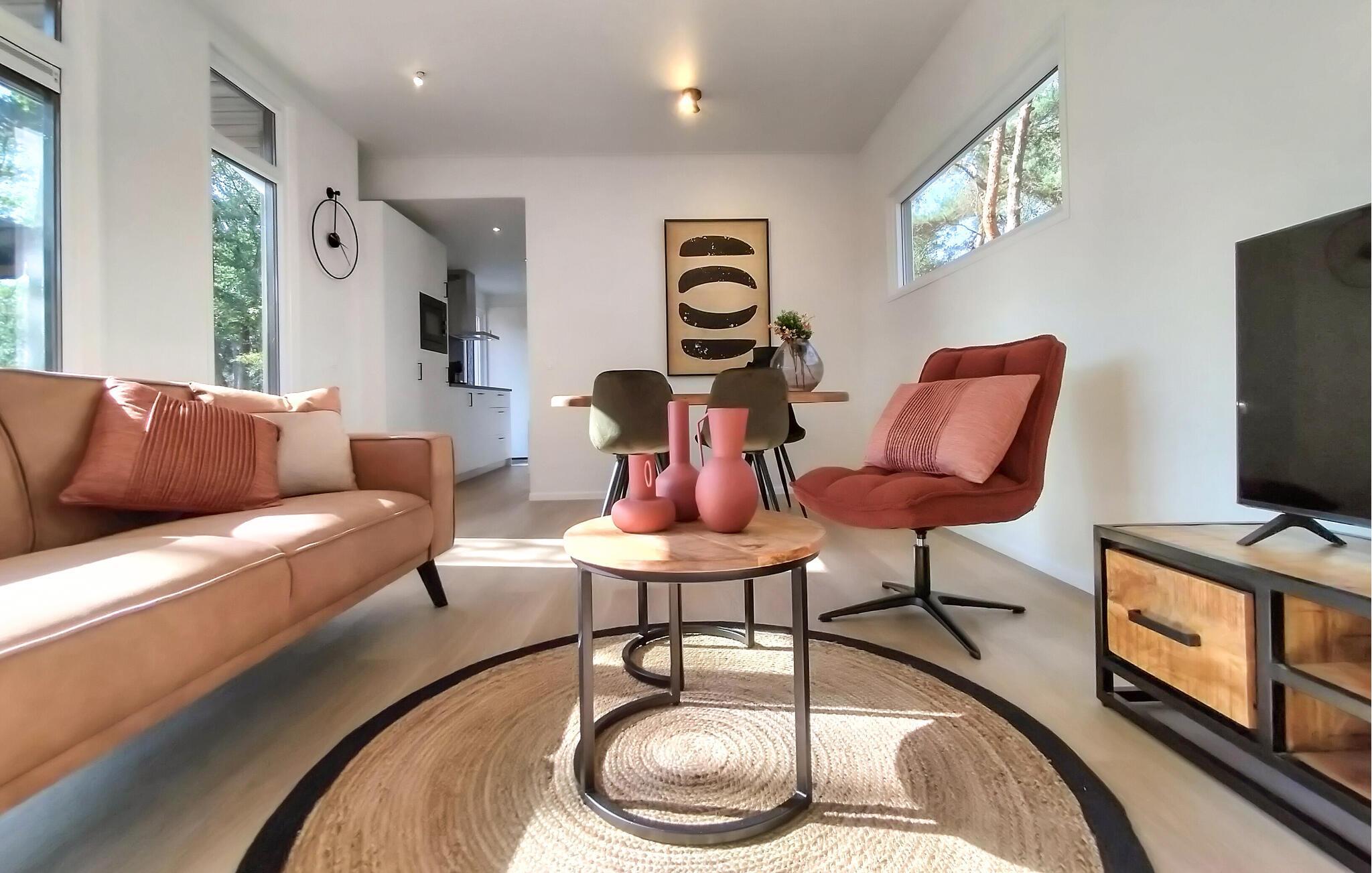 Jeres feriehus ligger i en lille skov, omgivet af smukke enge, i en feriepark. Parken er placeret på kanten af nationalparken Sallandse Heuvelrug og tæt på forlystelsesparken Avonturenpark Hellendoorn. I nærområdet finder I vidunderlige cykelstier og vandreruter, hvor I kan tage på gåture og nyde det idylliske landskab. Start jeres morgen i feriehuset med en friskbrygget kop kaffe i stuen, nyd den smukke udsigt og planlæg dagens aktiviteter. Efter en dag fuld af oplevelser kan I vende tilbage til de smagfuldt indrettede rum og tilbringe hyggelige aftener i sofaen.