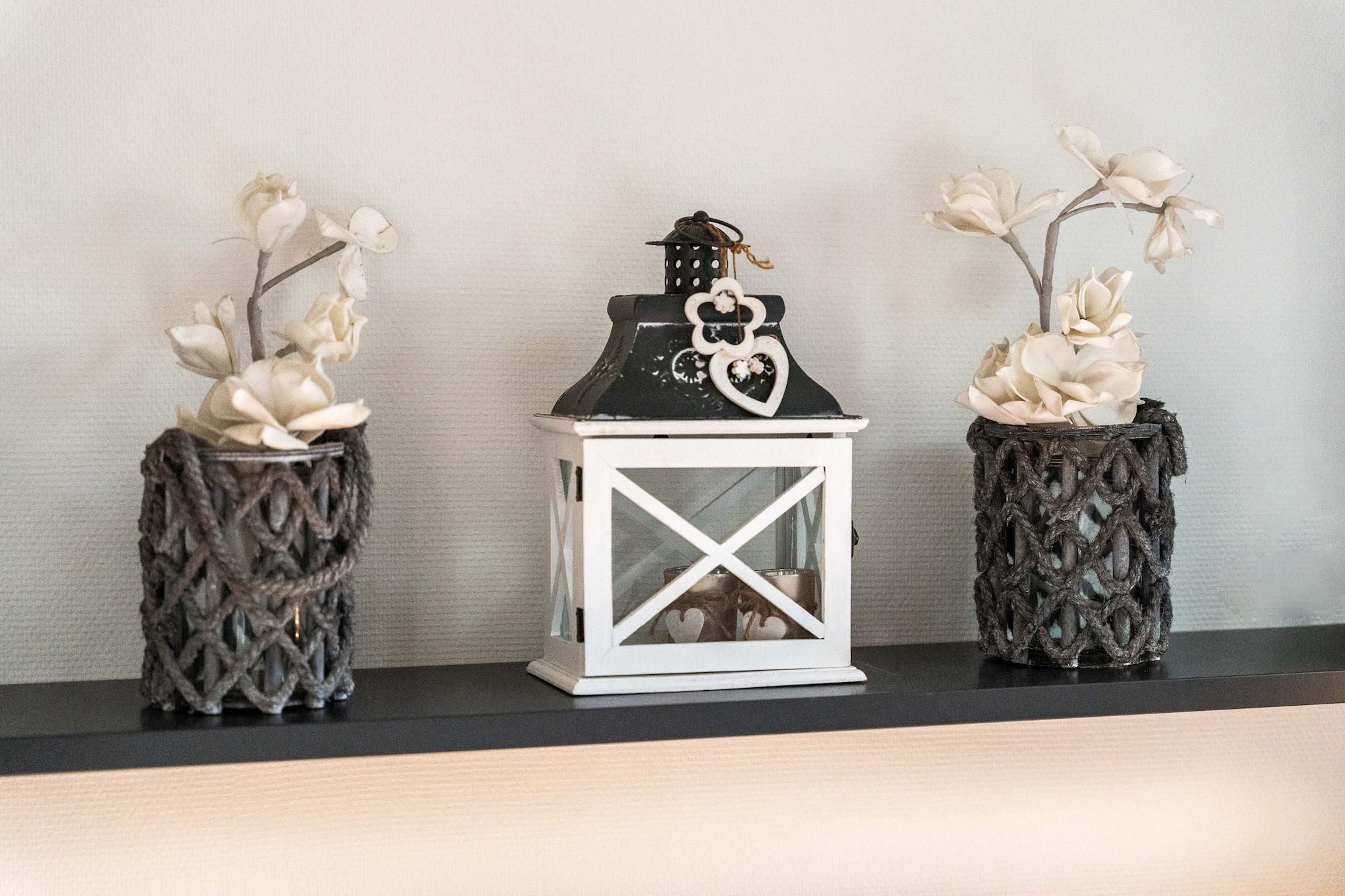Stueetage: (åbent køkken(elkedel, kaffemaskine, combi-mikroovn, opvaskemaskine , køle-fryseskab), stue / spisestue(Fjernsyn, spisebord, sofahjørne), soveværelse(dobbeltseng eller 2 enkeltsenge Senge), soveværelse(dobbeltseng eller 2 enkeltsenge Senge), soveværelse(dobbeltseng eller 2 enkeltsenge Senge), badeværelse(bruser, håndvask), toilet(toilet), pulterkammer) veranda, veranda, balkon eller terrasse, varme(gulvvarme), cykelopbevaring, havemøbler, parkering