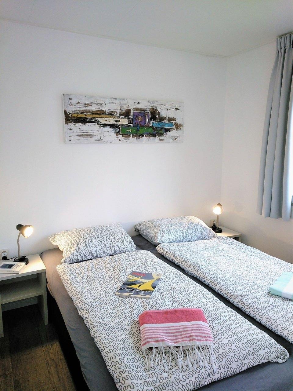 Das 2013 errichtete Chalet ist haben wir nach dem Kauf (2023) grundlegend renoviert --> Zaun; neue Terrasse, neue Möbel, neue Farbe.Es ist für 4 Personen großzügig eingerichtet und ausgestattet. Dafür stehen 2 Schlafzimmer; 1 Toilette/Bad mit Regendusche zur Verfügung. Ein lichtdurchfluteter großzügiger offener Wohn-, Ess- und Küchenbereich komplettiert das Innere. Selbstverständlich sind in der Küche alle modernen Elektrogeräte wie Spülmaschine; Herd/Microwellenkombination; Kühlschrank mit Gefrierfach; Toaster usw. vorhanden. Eigenes WLAN in Grundstücksnähe, sowie kostenloses WLAN auf dem gesamten Gelände ist nutzbar.