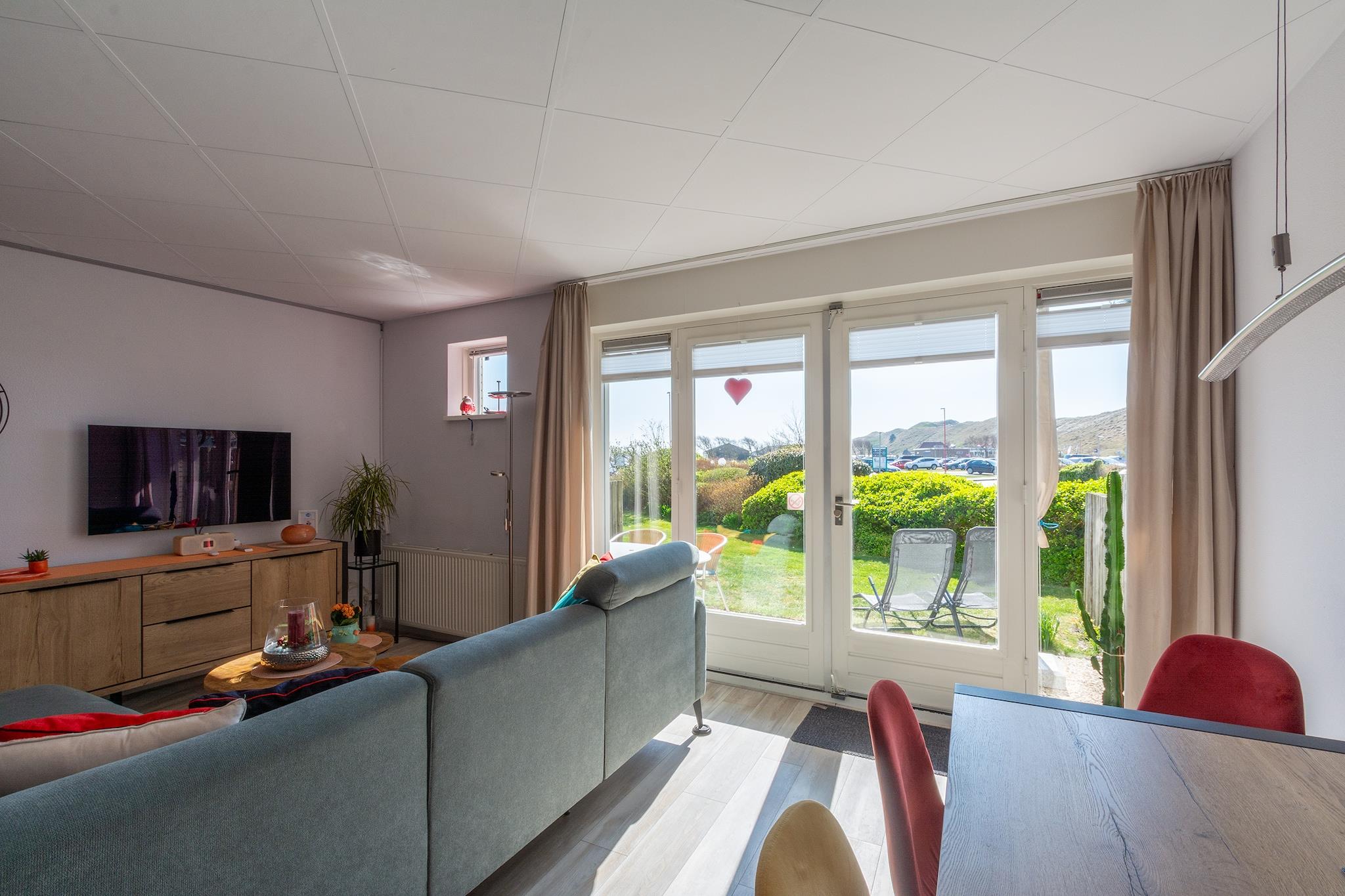 Stilfuldt ophold ved klitterne Strandslag 103 tilbyder et varmt, moderne oase kun få skridt fra stranden i Julianadorp aan Zee. Denne lejlighed i stueetagen har et lyst opholdsområde med terrassedøre, der åbner op til en privat terrasse og have - perfekt til at nippe til din morgenkaffe med udsigt over klitterne. Med et lækkert, fuldt udstyret køkken og et nyrenoveret badeværelse byder boligen på både komfort og stil. Én hund er også velkommen, og de nærliggende kæledyrsvenlige strandstier gør dette til et godt valg for din lodne følgesvend. Udforsk kystskønhed og hollandsk charme Julianadorp er kendt for sine brede sandstrande og slående tulipanmarker om foråret. Nyd lange gåture langs kysten eller cykelture gennem klitterne. Kun 15 minutter væk byder Den Helder på attraktioner som det hollandske flådemuseum og Fort Kijkduin-akvariet, der ligger i en Napoleonsk fæstning. Leder du efter en dagstur? Tag til Texel Island via færge for en unik ø-oplevelse fyldt med dyreliv, cykelstier og lokal charme. Nyd lokale smagsoplevelser Nyd et måltid ved stranden på Paal 6, elsket for sin havudsigt og friske fisk og skaldyr. For noget hyggeligt, besøg Restaurant De Jutter, der byder på hollandske klassikere og internationale retter. Snup en drink eller en snack på Strandpaviljoen Zee van Tijd, et afslappet sted lige ved sandet. Med lokale markeder og bagerier i nærheden kan du også få det bedste af Nordhollands kulinariske lækkerier med hjem, som du kan nyde i dit eget køkken.