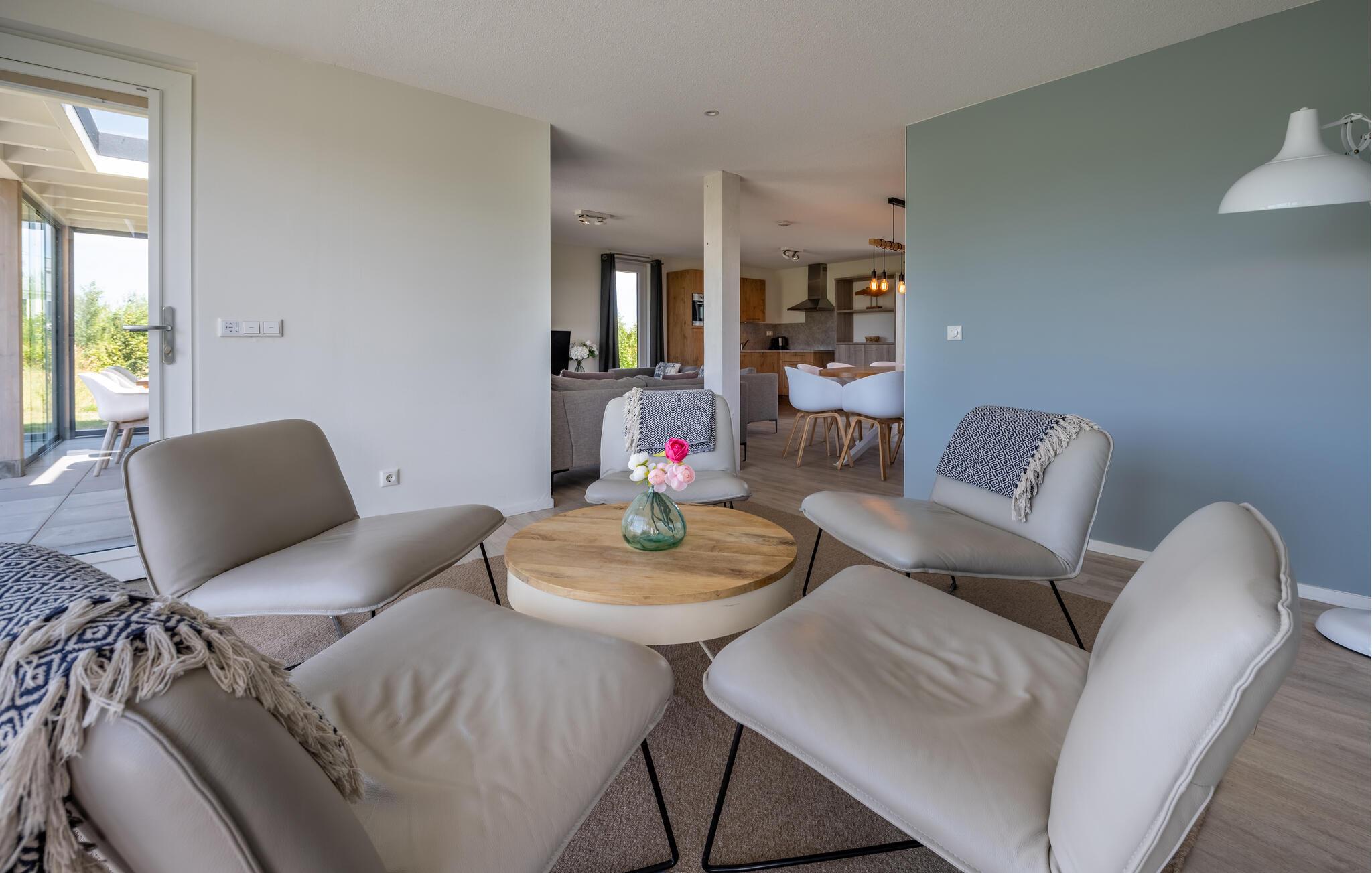 Denne moderne og luksuriøse villa, der ligger meget tæt på stranden, giver jer det perfekte sted at slappe af. De stilfulde møbler og den lyse, maritime atmosfære skaber en rolig og indbydende atmosfære. Her har I masser af plads til at nyde tiden med familie eller venner. Saml jer i det åbne opholdsrum, der problemfrit kombinerer køkken, spisestue og opholdsstue og lægger op til at lave mad, spise eller slappe af sammen. Den overdækkede terrasse er smukt oplyst om aftenen og giver jer en fantastisk udsigt over vandet. Terrassen er komfortabelt møbleret med et loungesæt og skydedøre i glas. Badeværelserne har regnbruser.