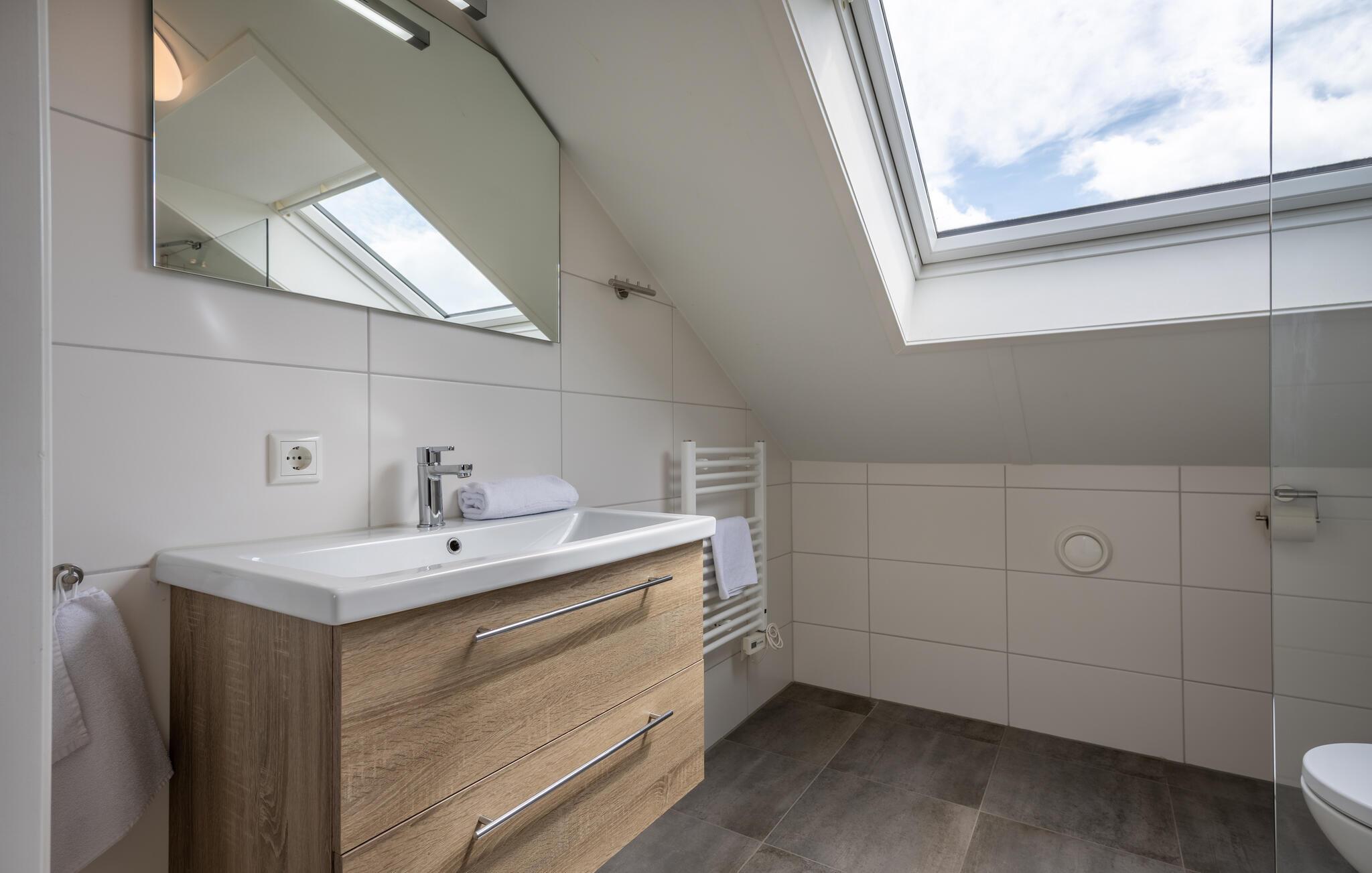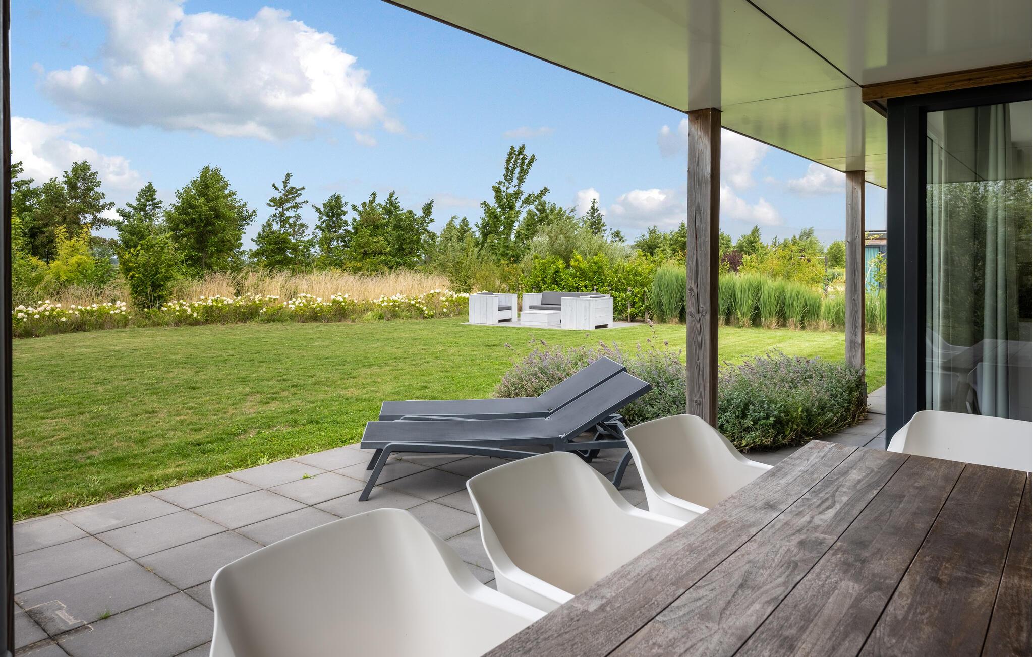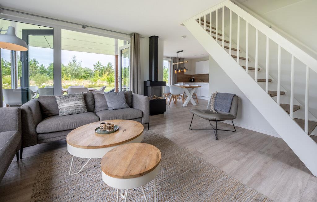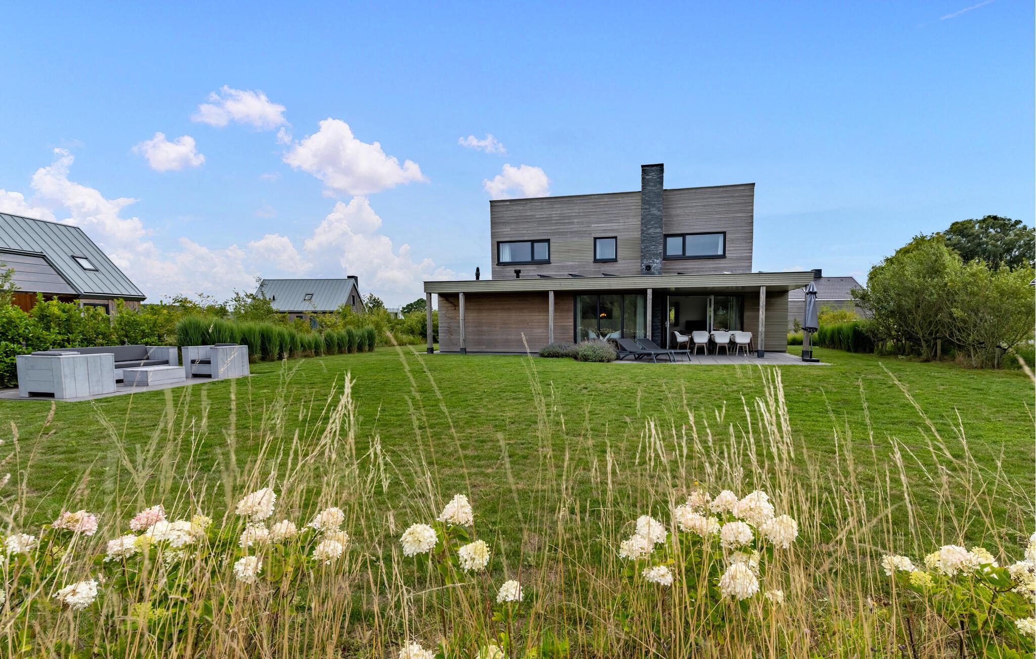 Denne moderne og luksuriøse villa, der ligger meget tæt på stranden, giver jer det perfekte sted at slappe af. De stilfulde møbler og den lyse, maritime atmosfære skaber en rolig og indbydende atmosfære. Her har I masser af plads til at nyde tiden med familie eller venner. Saml jer i den åbne stue, der problemfrit kombinerer køkken, spisestue og opholdsstue og lægger op til at lave mad, spise eller slappe af sammen. I kan virkelig nyde ferien på den møblerede, overdækkede terrasse og i den hyggelige lounge i havehjørnet. Den store have giver jer en fantastisk udsigt over polderlandskabet. Indenfor skaber pejsen en behagelig atmosfære. Badeværelserne har regnbruser.