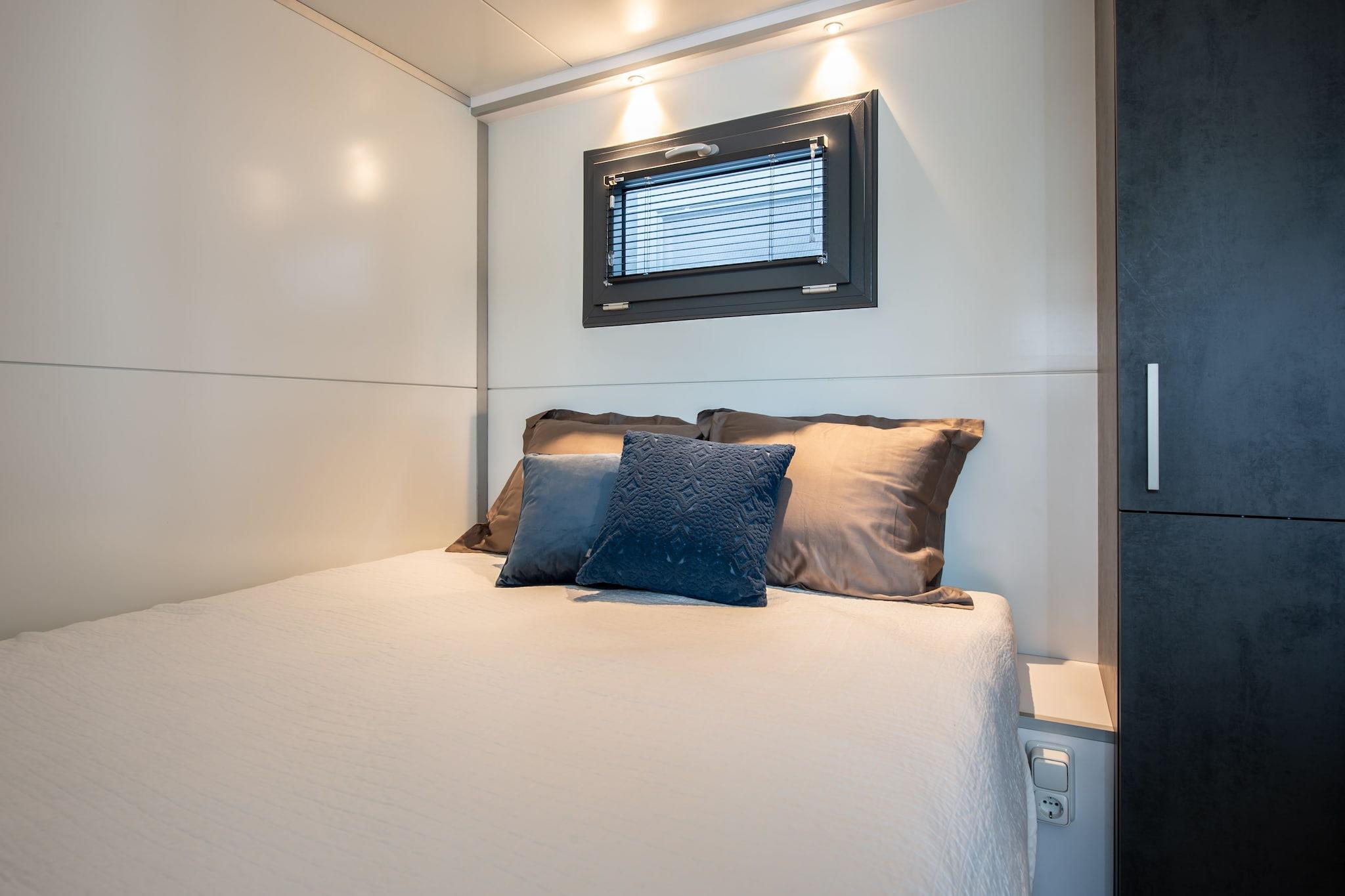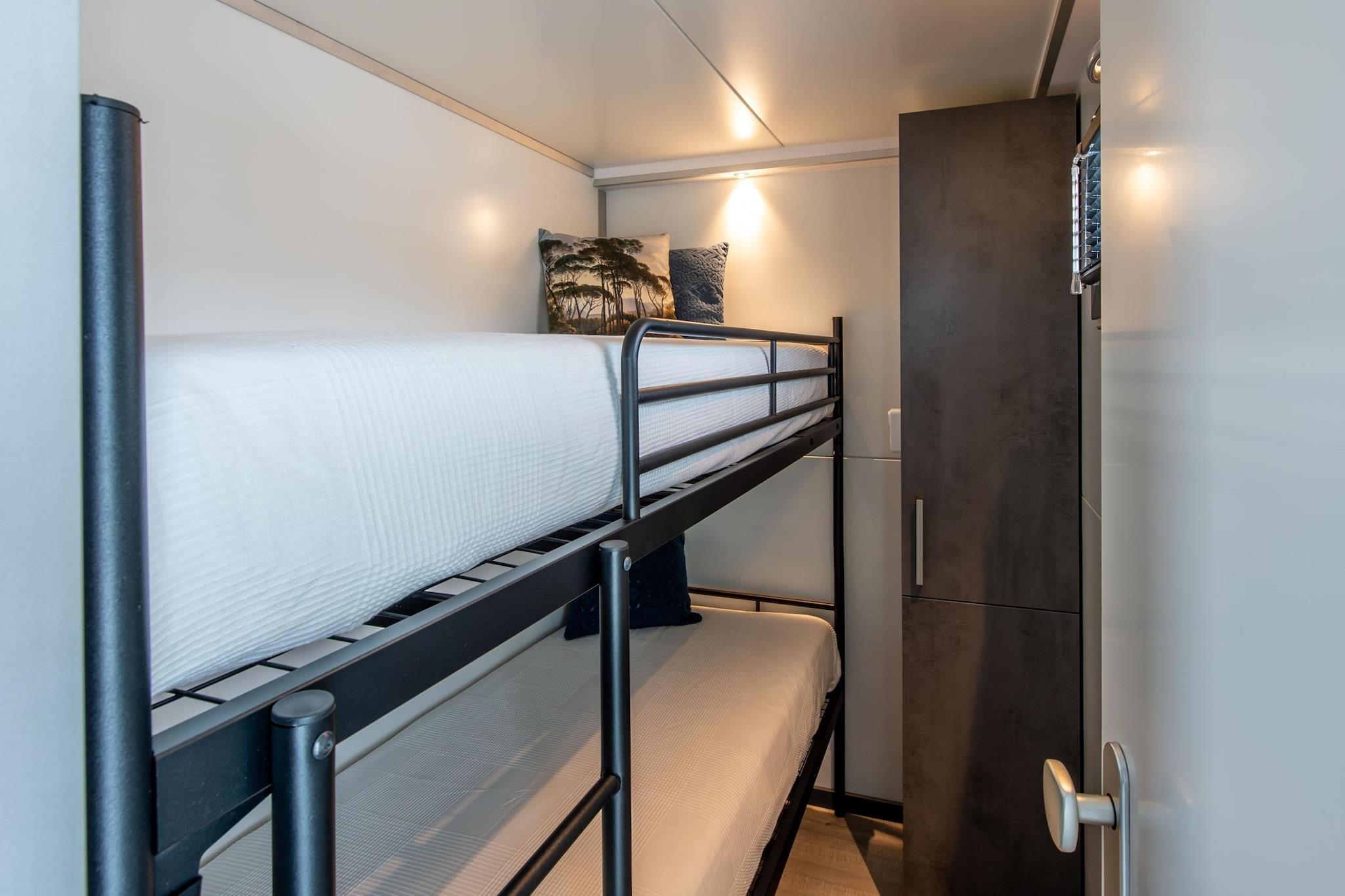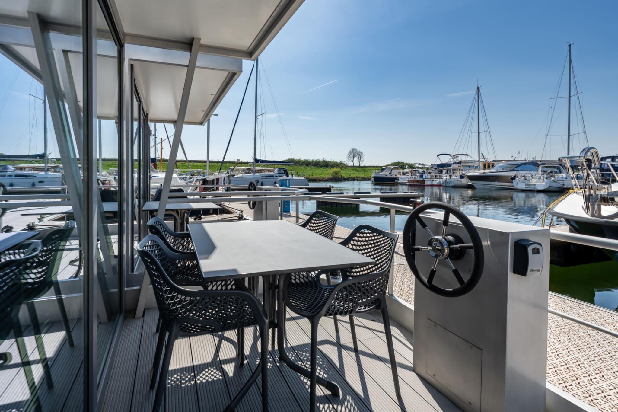 Ferie på vandet... det er muligt i denne nye Happy Harbor-vandlodge, egnet til højst to voksne og to børn, beliggende på en anløbsbro i Uithaven i Kamperland (landsby). Waterlodge har følgende indretning: opholdsstue (kabine) med laminatgulve og fjernsyn (Digitenne), køkkenalrum (kabys) med elektrisk 2-brænder komfur, kombineret mikroovn og køleskab med fryser. Det store soveværelse (hytte 1) har en dobbeltseng (1,60 meter bred) med en dobbeltdyne, et opbevaringsskab og et pengeskab. Børnenes soveværelse (hytte 2) har en køjeseng og opbevaringsskabe. Badeværelset er luksuriøst og udstyret med bruseniche, håndvask og toilet. Lodgen har en sydvendt beliggenhed og har ikke færre end to terrasser: på nederste dæk er terrassen udstyret med et bord med fire stole, det øverste dæk, som kan nås via en vindeltrappe, er udstyret med et bord med to bænke og har et sikkerhedsgelænder. På grund af denne vandlodges unikke beliggenhed har du alt, hvad du behøver under din ferie inden for rækkevidde: mulighederne for vandsport på Veerse Meer og faciliteterne i Kamperland og det omkringliggende område. Vandhytten er desværre ikke egnet til sejlads. Kunne du tænke dig at medbringe din egen båd for at kunne komme på vandet under dit ophold på Waterlodge Blue Island? Så råder vi dig til at kontakte havnefogeden i Marina Kamperland, han vil med glæde informere dig om mulighederne. Spørg vores medarbejdere om kontaktoplysningerne. I Waterlodges kan du bruge havnens offentlige WiFi-netværk, så vi kan ikke garantere kvaliteten af WiFi. Der er to Ecotap-ladepunkter på lystbådehavnens almindelige parkeringsplads til opladning af din elbil. Ladestationen kan benyttes mod betaling ved hjælp af et ladekort.