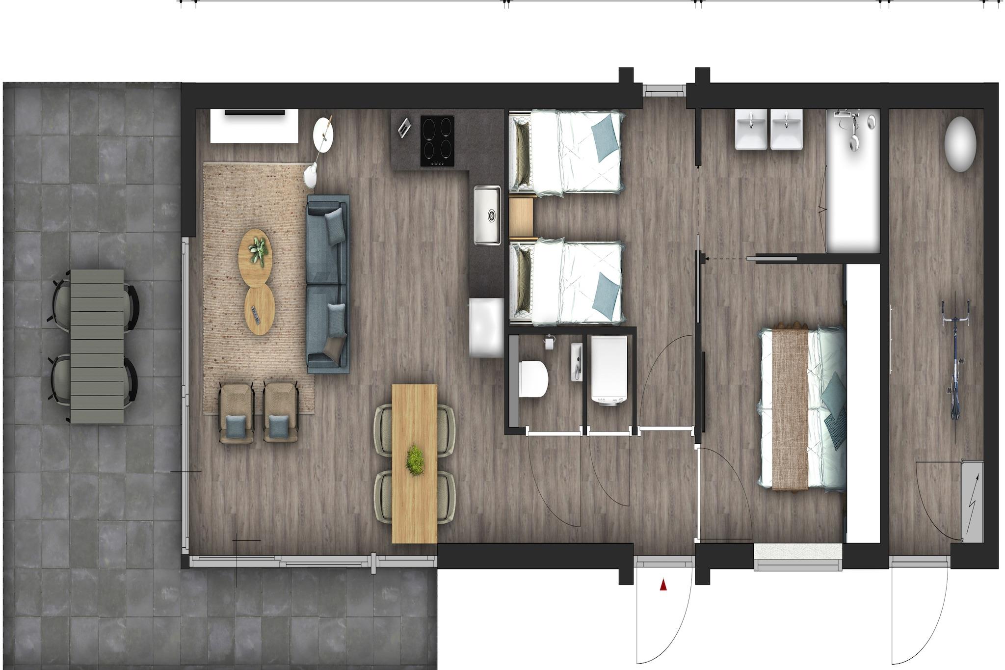 Bæredygtig komfort i en lodge ved vandet Træd ind i et gennemtænkt, miljøvenligt feriehus beliggende i det rolige, bilfrie Water Village. Denne moderne lodge kombinerer luksus og bæredygtighed med solenergi, varmepumpe, gulvvarme og elegant interiør. Stuen med smart-tv åbner op til et stilfuldt køkken med alt det nødvendige – opvaskemaskine, mikroovn og køleskab med fryser. Med to hyggelige soveværelser med boxmadrasser og en spa-inspireret brusekabine mødes komfort og bevidsthed i hvert hjørne. Kæledyrsvenlig sjov og udforskning af kysten Tag din firbenede ven med – kæledyr er hjerteligt velkomne! Udforsk naturskønne vandrestier lige fra parken, eller lad din hund plaske i bølgerne på nærliggende kæledyrsvenlige strande som Vrouwenpolder eller Neeltje Jans. Den omkringliggende Zeeland-region byder på masser af hundevenlige caféer, skovstier og rolige klitter, der er perfekte til en morgentur eller et eftermiddags eventyr med din ledsager. Fremragende beliggenhed og kulinariske lækkerier Med beliggenhed i Kamperland er du kun få minutter fra Zeelands uberørte strande og charmerende kystbyer. Nyd en middag ved vandet på Seafarm, friske fisk og skaldyr på Brasserie Blush eller lokale snacks fra De Brouwerij. Efter en dag med udforskning kan du slappe af på din private haveterrasse med et glas vin, mens din firbenede ven slapper af ved din side.