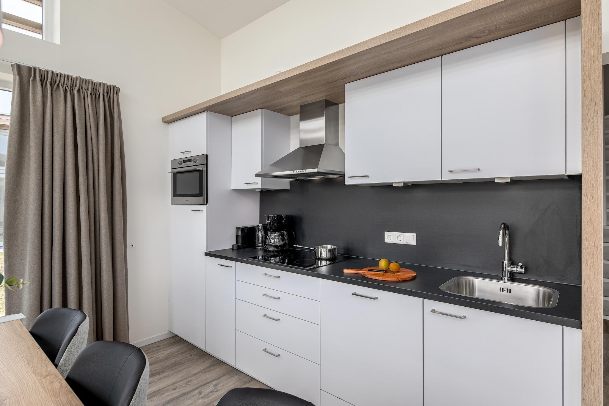 Velkommen til dit fredfyldte fristed i det miljøbevidste Water Village, Kamperland – hvor elegant, moderne design møder den beroligende kulisse ved vandet. Denne fritliggende, bilfri bungalow tilbyder komfort med god samvittighed: gulvvarme, solcellestrøm og en varmepumpe i stedet for gas. Indenfor finder du en luftig stue med smart-tv, et stilfuldt åbent køkken og to rummelige soveværelser i stueetagen – begge med eget brusebad. Et tredje soveværelse på første sal gør dette til et perfekt feriested for familier eller venner, inklusive dine firbenede ledsagere. Tag din firbenede ven med! Kamperland er en drøm for dyreelskere med naturskønne vandrestier langs Veerse Meer og kæledyrsvenlige strande kun få minutter væk. Det nærliggende Roompot Beach Resort (fælles adgang) tilbyder græsklædte picnicpladser og store åbne områder, hvor du kan lege med din hund. Foretrækker du en fredelig spadseretur? Tag til det nærliggende naturreservat De Schotsman for skyggefulde skovture og udsigt over søen – ideelt for både logrende haler og afslappede gåture. Nyd morgenmaden på din private terrasse, eller gå til lokale kæledyrsvenlige caféer som Seafarm Dining & Lounge, hvor du kan få friske fisk og skaldyr med udendørs servering. Besøg det nærliggende Middelburg eller Veere for charmerende terrasser, boutique-shopping og masser af muligheder for at slappe af med din hund ved din side. Efter en dag med udforskning kan du slappe af i din lukkede have med liggestole, mens din hund sover ved dine fødder – ren lykke ved vandet.
