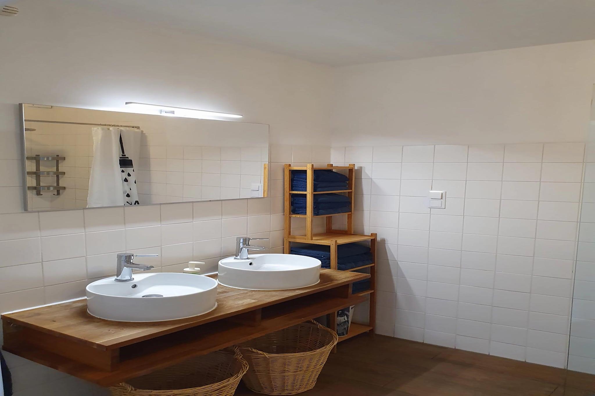 Stueetage: (entre(toilet), soveværelse(dobbeltseng), soveværelse(køjeseng), badeværelse(bruser, 2x håndvask, toilet), pulterkammer(køle-fryseskab, tørretumbler, vaskemaskine), terrasse) På 1. etage: (åbent køkken(elkedel, brødrister, komfur, emhætte, kaffemaskine, mikrobølgeovn, opvaskemaskine , køleskab), stue / spisestue(Fjernsyn(digital, Hollandske TV-kanaler, Internationale TV-kanaler), spisebord, pejs, sofahjørne, DVD-afspiller, radio), soveværelse(køjeseng)) Fjernsyn, varme, terrasse, havemøbler, solstole, grill, liggestole, Parasol, barneseng, barnestol, strygebræt, legetøj, Solcreme