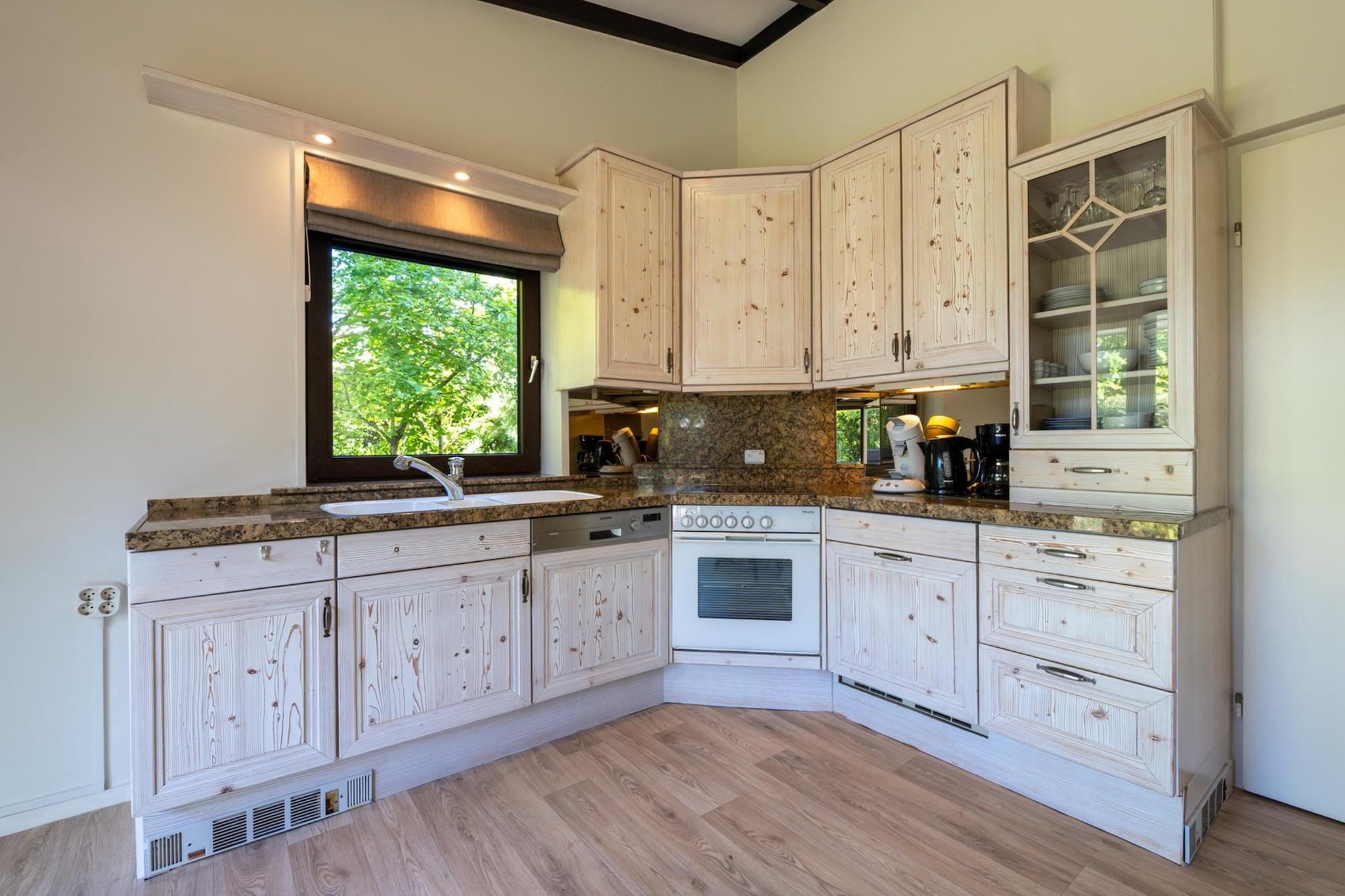Stueetage: (entre(toilet), Stue(Fjernsyn(kabel, fladskærm, digital, Smart-TV, Hollandske TV-kanaler, Tyske TV-kanaler, Internationale TV-kanaler), spisebord(7 personer), sofahjørne(7 personer), gaspejs), åbent køkken(kogeplade(glaskeramisk), kaffemaskine, ovn(grill-ovn), opvaskemaskine , køle-fryseskab), Soveværelse med badeværelse(2x enkeltseng(boxmadras), bruser, håndvask, toilet), havedøre) På 1. etage: (soveværelse(3x enkeltseng(boxmadras)), soveværelse(dobbeltseng(240 x 220 cm)), badeværelse(badekar med bruser, håndvask, toilet)) pulterkammer(køle-fryseskab, tørretumbler, vaskemaskine), varme(central, gas), terrasse(privat, 20 m2), have(privat, indhegnet, oplyst, 350 m2), havemøbler, parkering, parkering