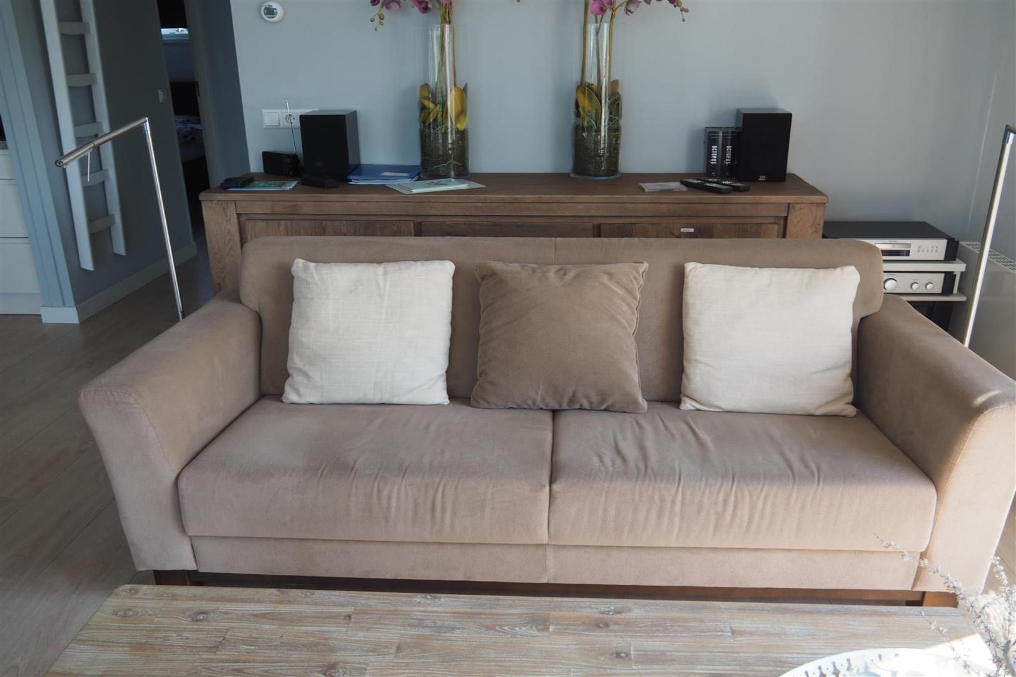 Stueetage: (åbent køkken(elkedel, komfur(gas), kaffemaskine(kaffepude), ovn, mikrobølgeovn, opvaskemaskine , køle-fryseskab), stue / spisestue(Fjernsyn(fladskærm), spisebord(4 personer), sofahjørne, DVD-afspiller), soveværelse(køjeseng), soveværelse(2x enkeltseng(dynebetræk), rejseseng), badeværelse(bruser, håndvask), toilet, pulterkammer, havedøre, terrasse, have, havemøbler(4 personer), parkering, Parasol, barnestol)