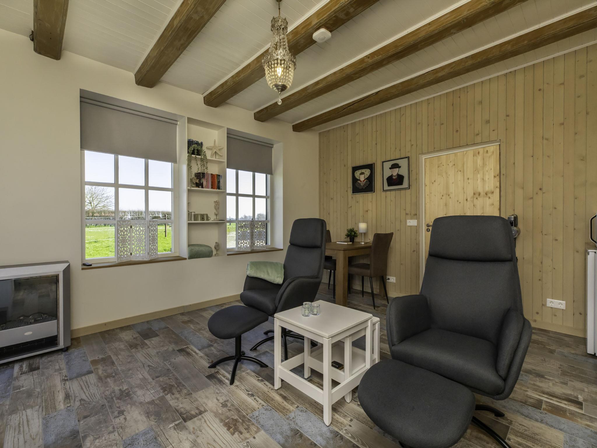 "Charming house Koudekerke", 2-room apartment on the ground floor. Object suitable for 2 adults. Practical and cosy furnishings: living/dining room with TV. Exit to the garden, to the terrace with 1 double bed (160 cm, length 200 cm). Small kitchenette (kettle, electric coffee machine, combination microwave). Shower/WC. Sitting area. Beautiful view of the countryside. Facilities: Internet (WiFi, free). Parking at the house. This property does not have a kitchen.