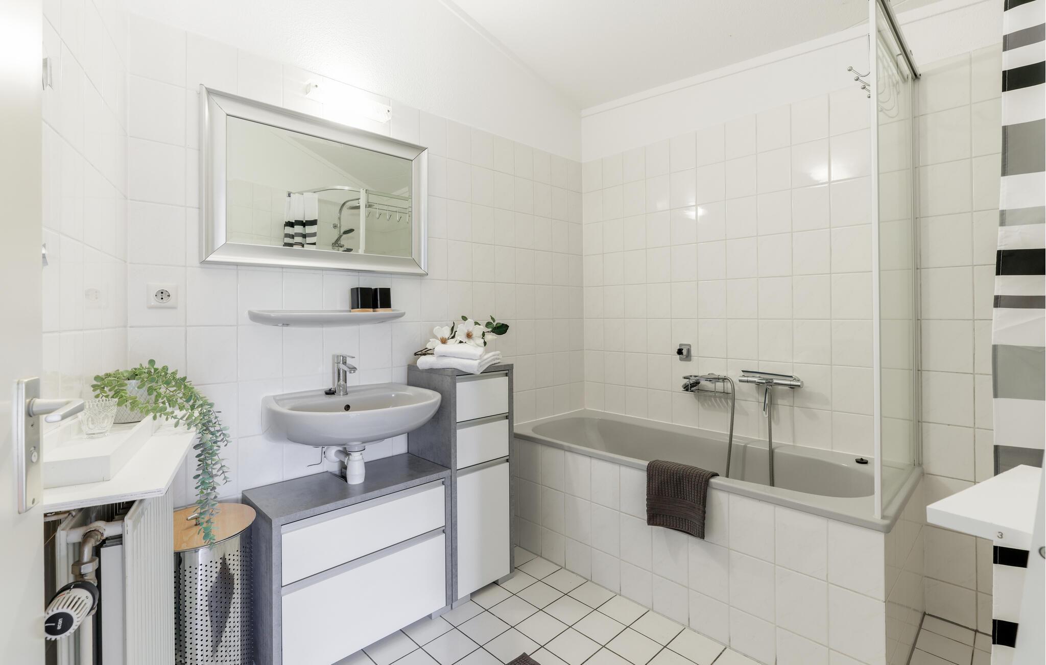 Badeværelse (nr. 1) - Varmt og koldt vand. Bruser og badekar