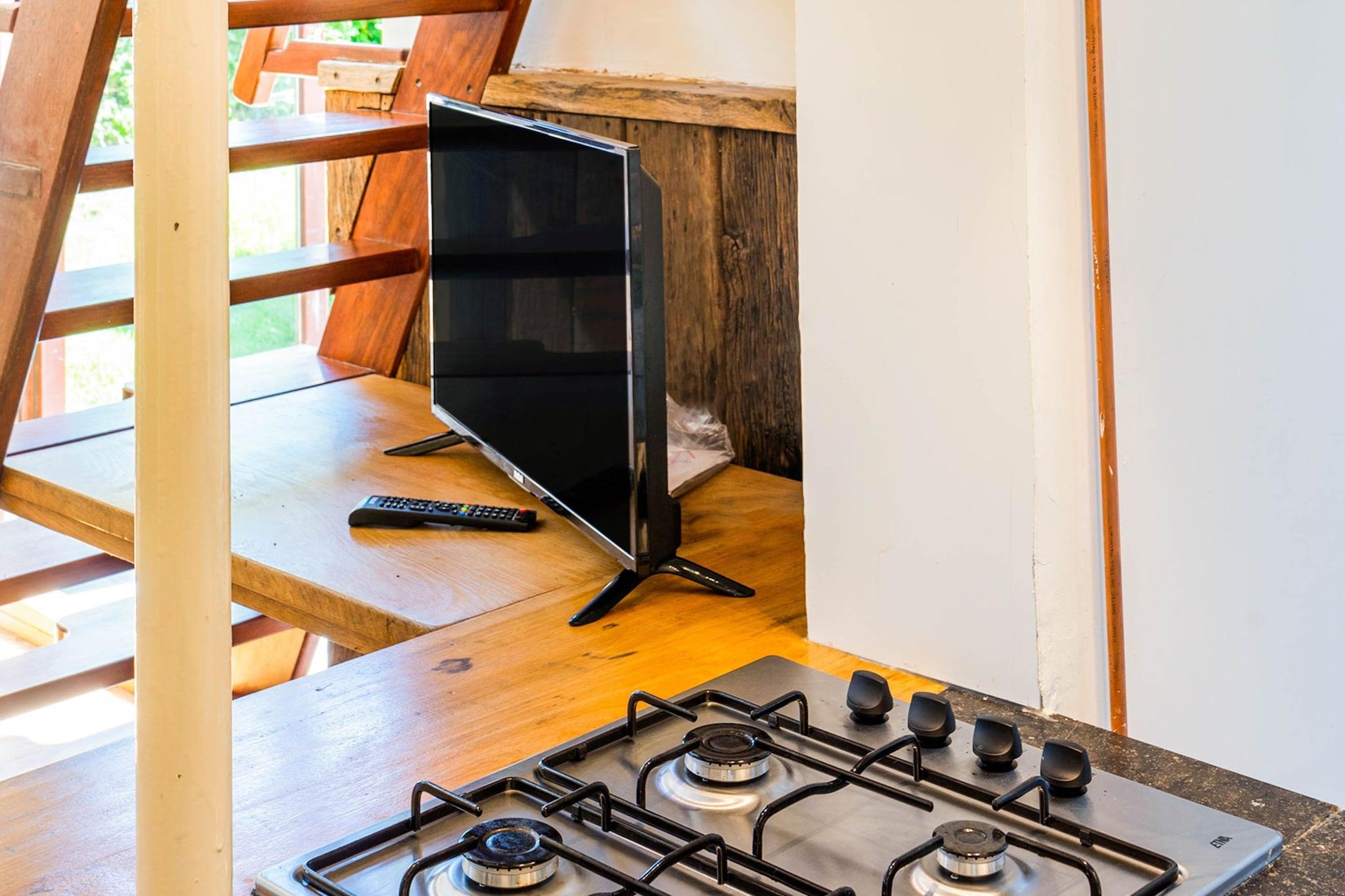 Stueetage: (åbent køkken(kogeplade(Komfur med fire kogeplader, gas), elkedel, emhætte, kaffemaskine(kaffetragt, kaffepude), combi-mikroovn, køleskab), stue / spisestue(Fjernsyn, spisebord, sofahjørne), badeværelse(bruser, håndvask, føntørrer), toilet) På 1. etage: (soveværelse(enkeltseng, enkeltseng)) mikrobølgeovn, badekar eller bruser, havedøre, varme, terrasse, have, havemøbler, grill, parkering, liggestole, Parasol