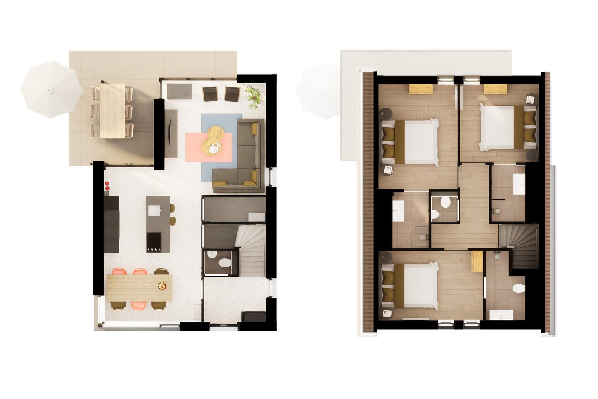 Stueetage: (entre(toilet), Stue(Fjernsyn(Smart-TV), sofahjørne), åbent køkken(kogeplade(Komfur med fire kogeplader, induktion), kaffemaskine(kopper), combi-mikroovn, opvaskemaskine , køle-fryseskab)) På 1. etage: (soveværelse(dobbeltseng eller 2 enkeltsenge Senge, bruser(Walk-in-bruser), håndvask), Soveværelse med badeværelse(dobbeltseng eller 2 enkeltsenge Senge, Fjernsyn(Smart-TV), badekar, bruser(Walk-in-bruser), håndvask, toilet), Soveværelse med badeværelse(dobbeltseng eller 2 enkeltsenge Senge, bruser(Walk-in-bruser), håndvask), Repos(toilet)) terrasse, have(indhegnet), havemøbler, parkering, swimmingpool(deles med andre gæster, udendørs, indendørs), Ladestation til el-biler
