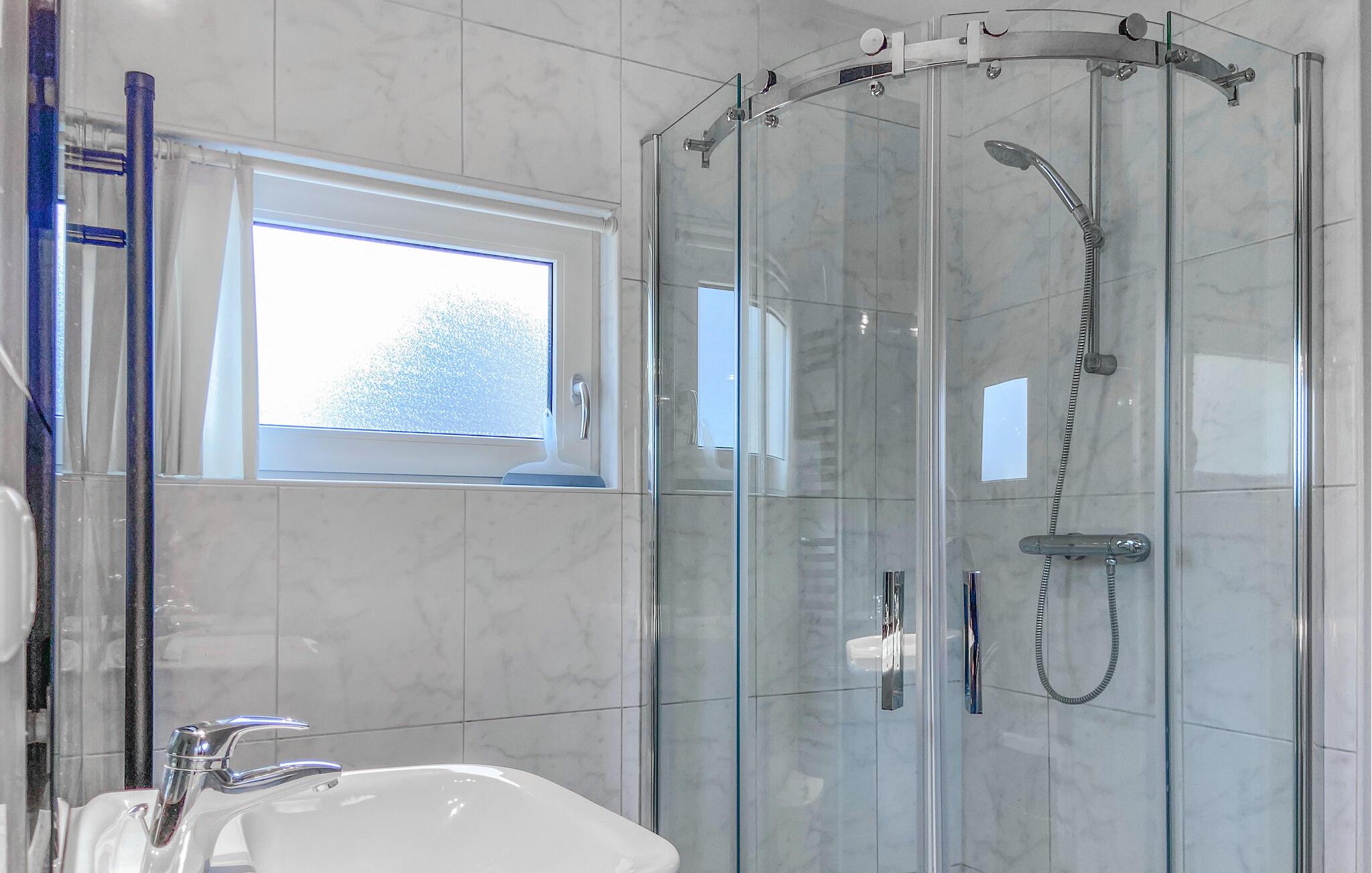Badeværelse (nr. 1) - Varmt og koldt vand. Bruser og badekar