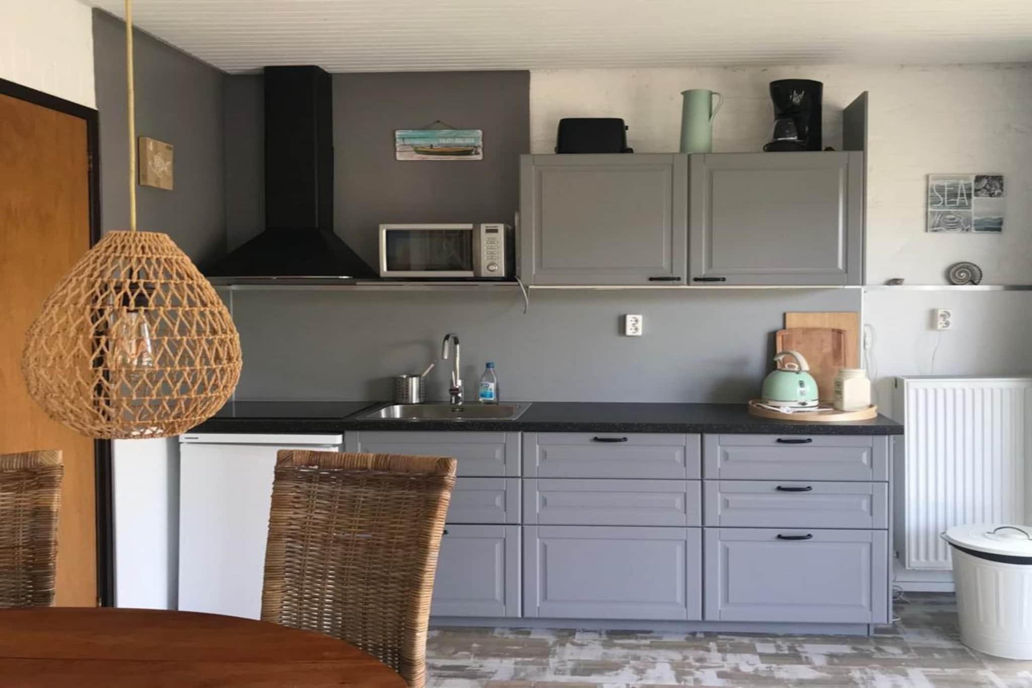 Slap helt af i denne bungalow i en meget lille, grøn bungalowpark i Sint Maartensvlotbrug. Disse idylliske, landlige omgivelser tilbyder ægte ro, men stranden og klitterne ligger kun en kort 10-minutters cykeltur væk, perfekt til cykling og afslapning. Dette hjem blev fuldstændig renoveret i 2019 med et fornyet toilet i 2022, hvilket sikrer en frisk og moderne oplevelse. Den lyse, stilfuldt møblerede stue har en komfortabel sofa, tv med kabel-tv og Wi-Fi. Franske døre forbinder problemfrit stuen med haven, og der er også et spisebord med fire rattanstole til hyggelige måltider._x000D_ Køkkenet er fuldt udstyret med et induktionskogeplade med 4 blus, opvaskemaskine, mikrobølgeovn, elkedel, brødrister, køleskab og kaffemaskine, hvilket gør det nemt at tilberede dine yndlingsretter. Det indbydende soveværelse kan prale af en baldakinbeklædt boxmadras (1,60 m bred) og en stor kommode samt en praktisk håndvask. Toilettet og bruseren er opdelt i to rum, hvor det rummelige brusebad tilbyder en afslappende regnbruser. Gå ud fra stuen til den smukt anlagte og velholdte have. Haven er omgivet af et træhegn og er møbleret med forskellige siddepladser og afslapningsmuligheder, der inviterer dig til at slappe af udendørs. Privat parkering er tilgængelig for alle bungalows ved parkindgangen. Bemærk: Sengelinned er valgfrit og kan købes for EURO 13 pr. person/ophold.