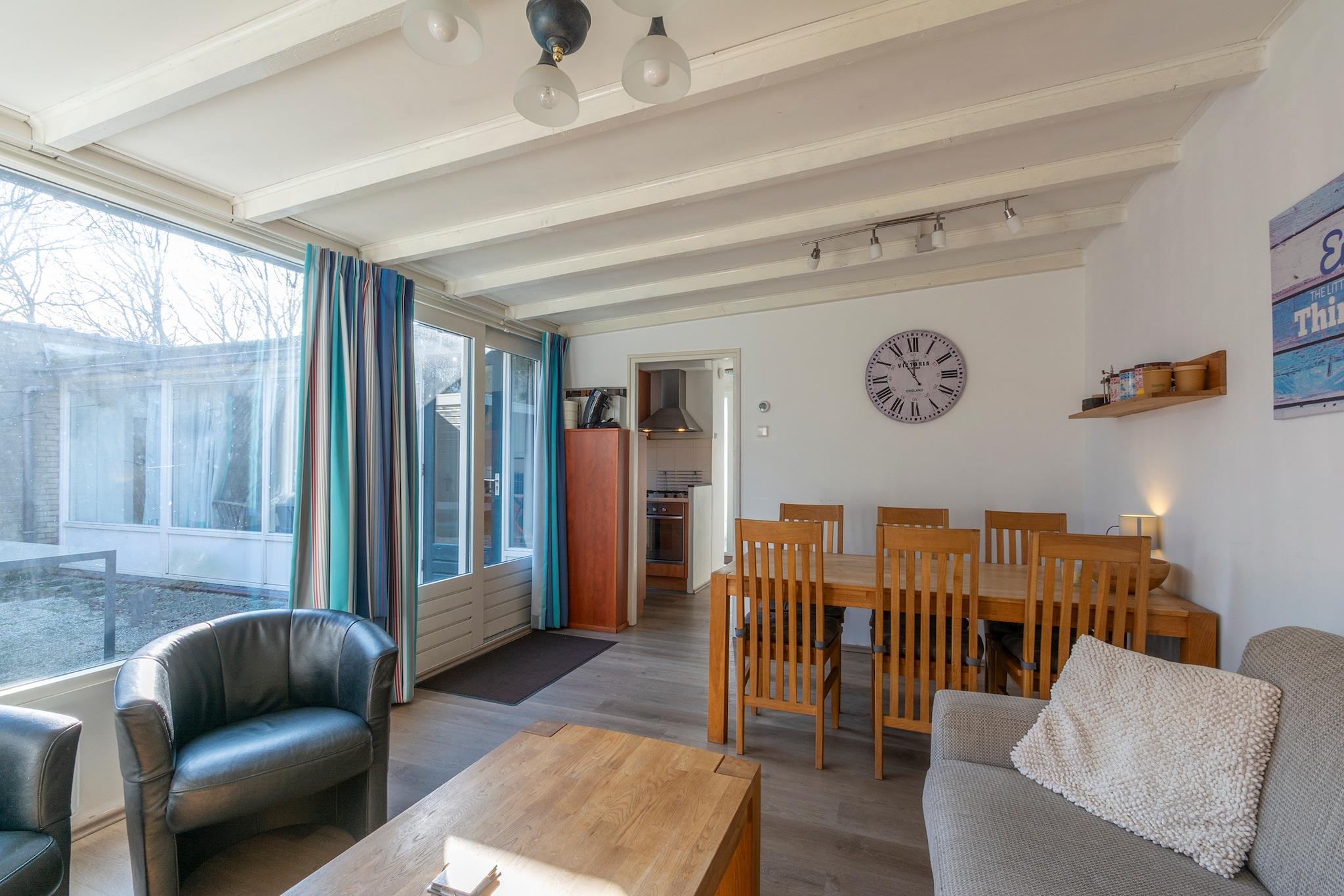 Velkommen til Duinland 190, en dejlig feriebungalow perfekt til en afslappende ferie nær den smukke strand i Sint Maartenszee. Dette indbydende hjem har en rummelig, grøn have med en overdækket terrasse, der giver de ideelle rammer for op til fem gæster til at nyde deres tid sammen i privatlivets fred. Den fuldt indhegnede have er perfekt til at tage din lodne ven med - hunde er hjerteligt velkomne her! Det store udendørs rum giver mulighed for sjov og afslapning, mens den overdækkede terrasse byder på et hyggeligt sted at nyde solen eller nyde et måltid under åben himmel. Indenfor er stuen badet i naturligt lys fra store vinduespartier, hvilket skaber en varm og indbydende atmosfære. Det hyggelige opholds- og spiseområde inkluderer aircondition til de varme sommerdage. Det moderne køkken er fuldt udstyret, hvilket gør det nemt at tilberede dine yndlingsretter. Bungalowen har tre komfortable soveværelser: Det rummelige soveværelse med en dobbeltseng forbindes til et mindre værelse med en enkeltseng, mens det tredje soveværelse byder på to enkeltsenge - perfekt til familier eller venner. Duinland 190 er virkelig et dejligt hjem til din ferie i Sint Maartenszee. Nyd den solrige overdækkede terrasse, rigelige skyggefulde steder i haven og bekvemmeligheden ved at være i gåafstand fra strand og hav.