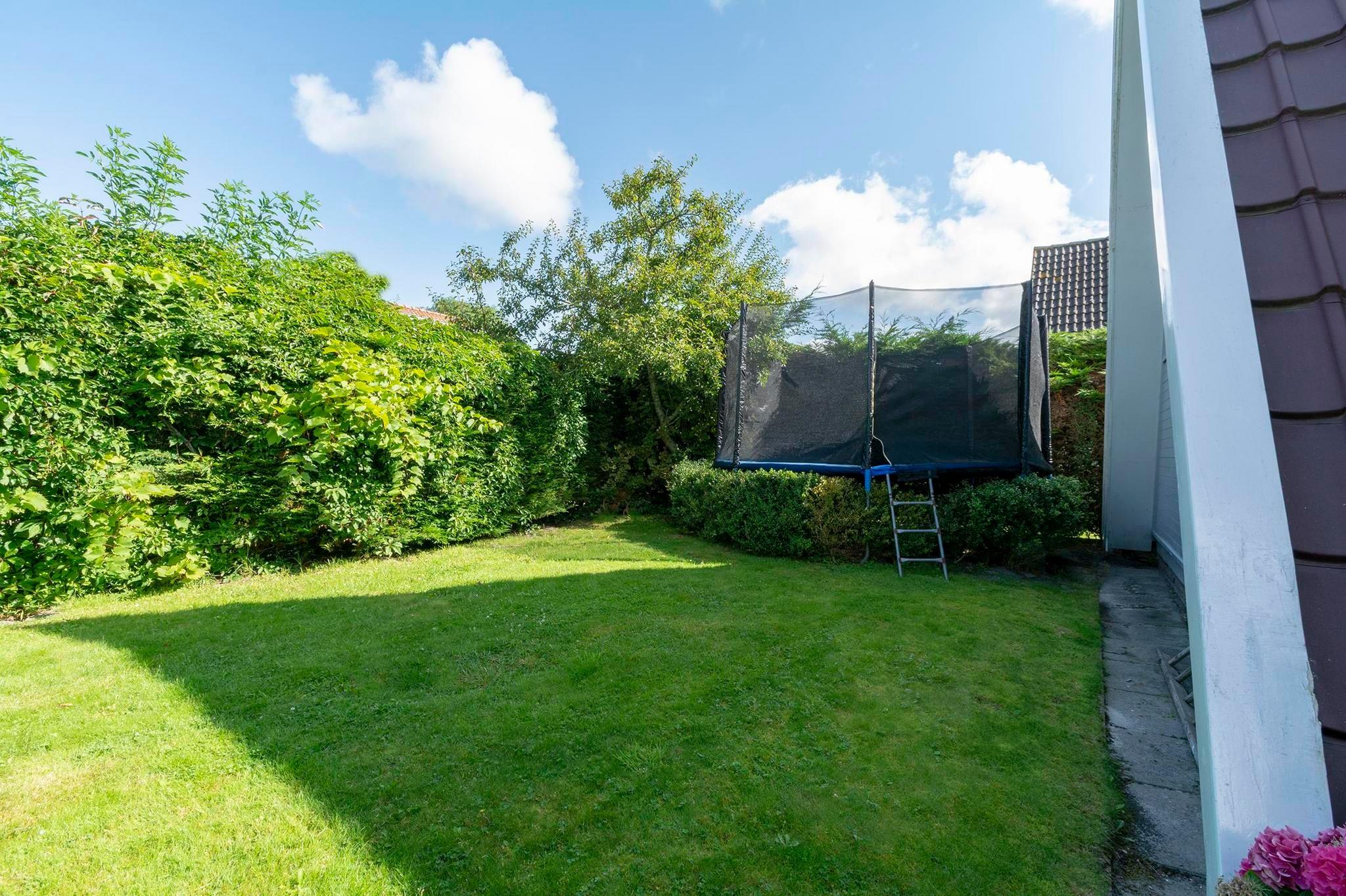 Stueetage: (Stue(Fjernsyn(fladskærm, Smart-TV), sofahjørne, radio), åbent køkken(spisebord, kogeplade(Komfur med fire kogeplader, gas), elkedel, brødrister, emhætte, kaffemaskine(kaffetragt), ovn, mikrobølgeovn, opvaskemaskine , køleskab, (), ()), badeværelse(badekar, bruser, håndvask, toilet), toilet(toilet)) På 1. etage: (soveværelse(dobbeltseng), soveværelse(enkeltseng, enkeltseng), soveværelse(enkeltseng, enkeltseng)) Internetadgang, tremmeseng, varme(central), terrasse, have(indhegnet), havemøbler, liggestole, Parasol, barnestol, trappegitter, tørreskab