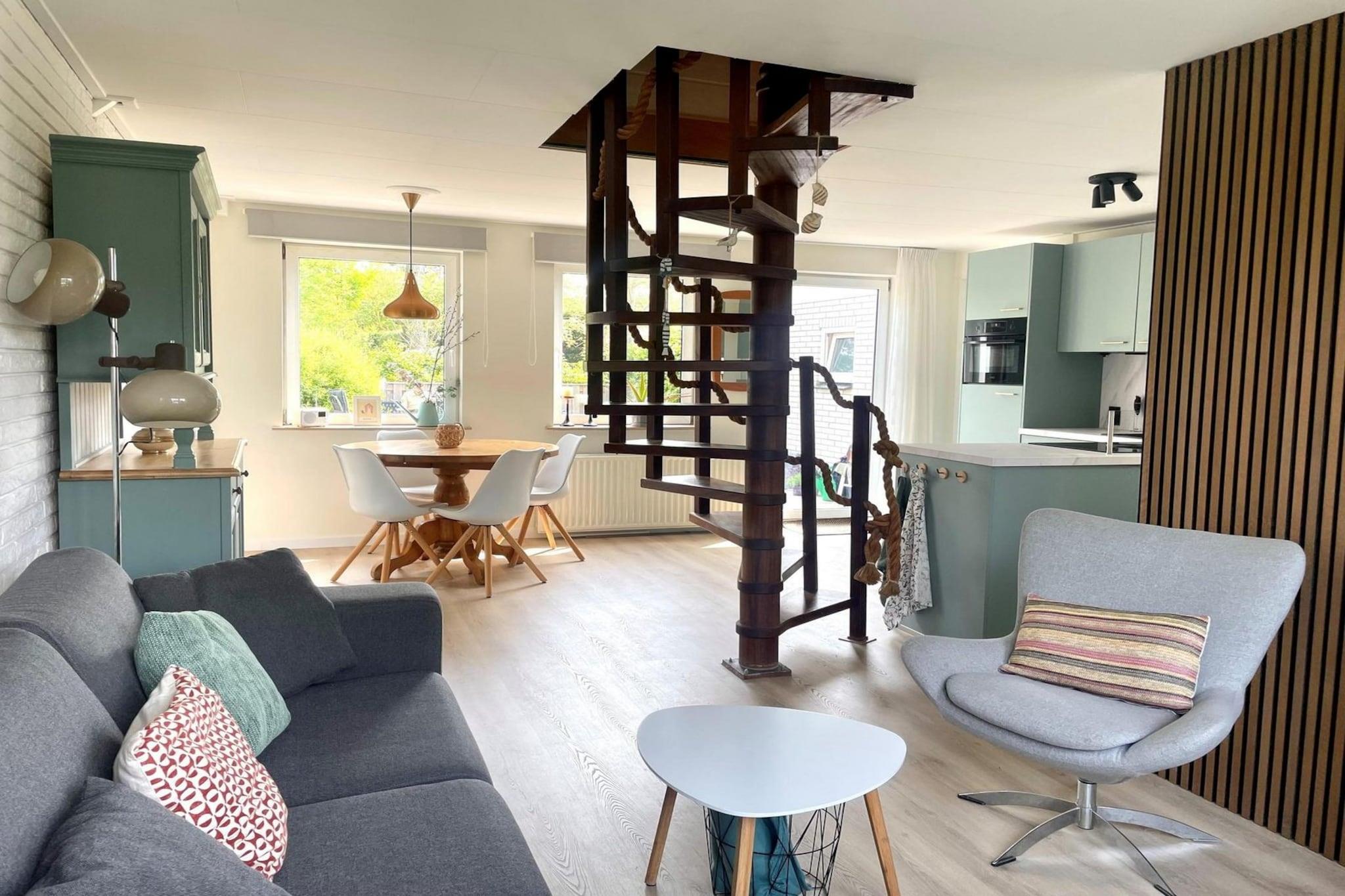 Stueetage: (åbent køkken(kakkelovn, kogeplade(induktion), elkedel, brødrister, kaffemaskine(espresso, kaffetragt), ovn, mikrobølgeovn, opvaskemaskine , køle-fryseskab), stue / spisestue(Fjernsyn(kabel, Smart-TV, Hollandske TV-kanaler), spisebord, sofahjørne), soveværelse(dobbeltseng(to enkeltdyner)), badeværelse(bruser(Walk-in-bruser), håndvask, toilet), Internetadgang) På 1. etage: (soveværelse(dobbeltseng(boxmadras)), soveværelse(enkeltseng, enkeltseng)) Havemøbler, have, parkering, Parasol, Ladestation til el-biler