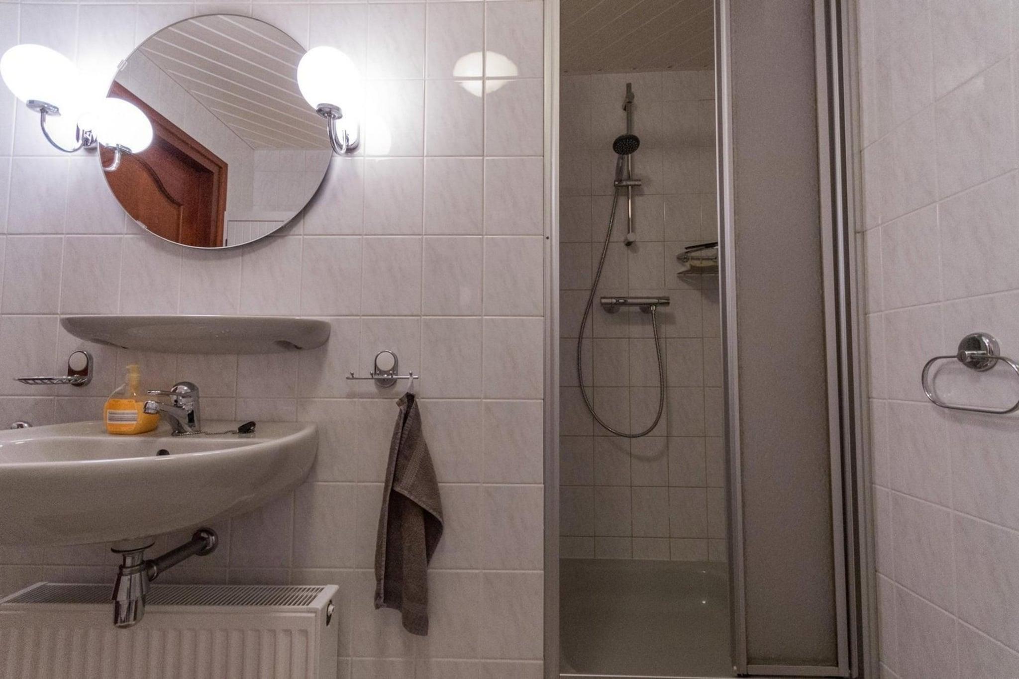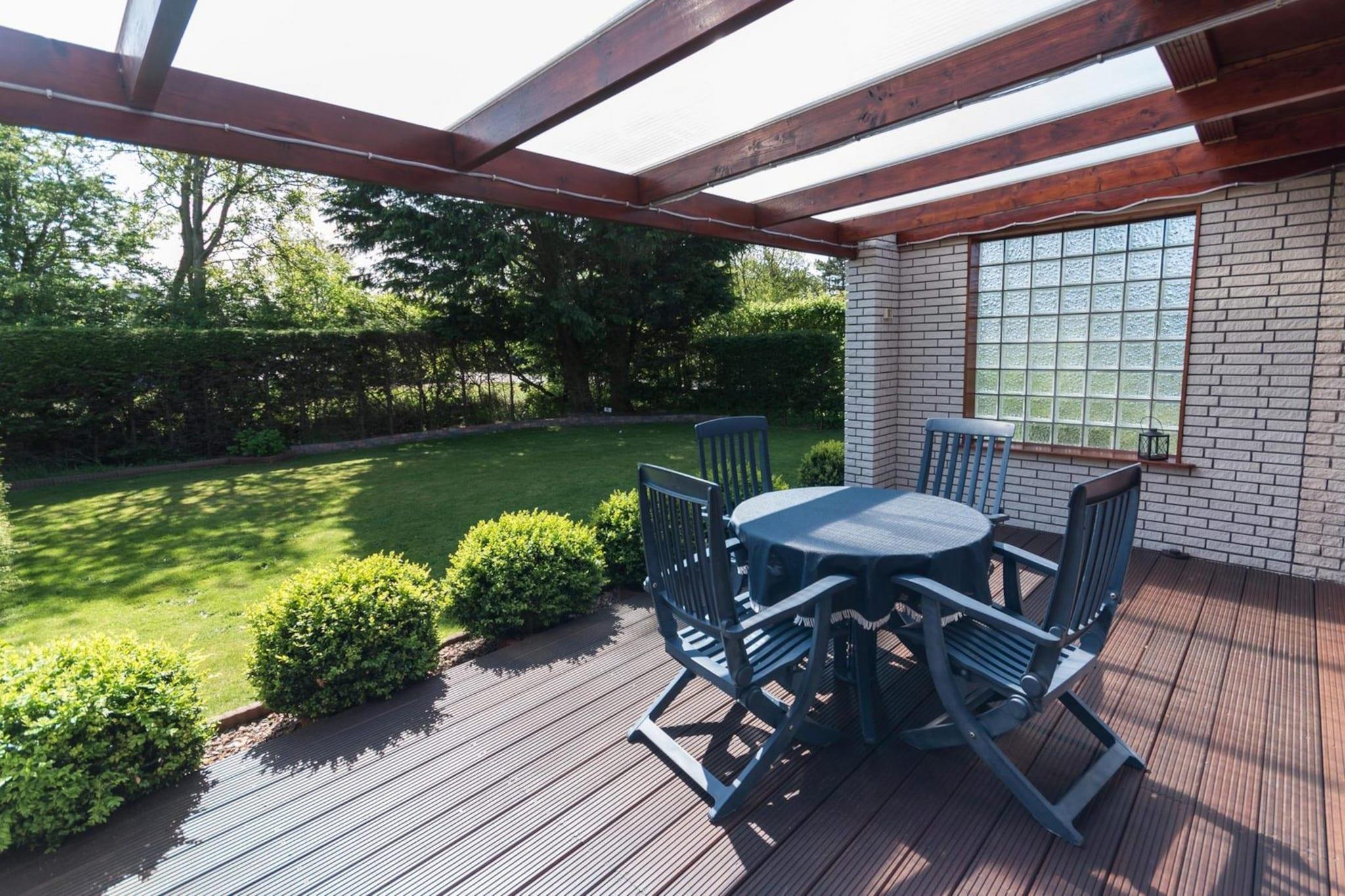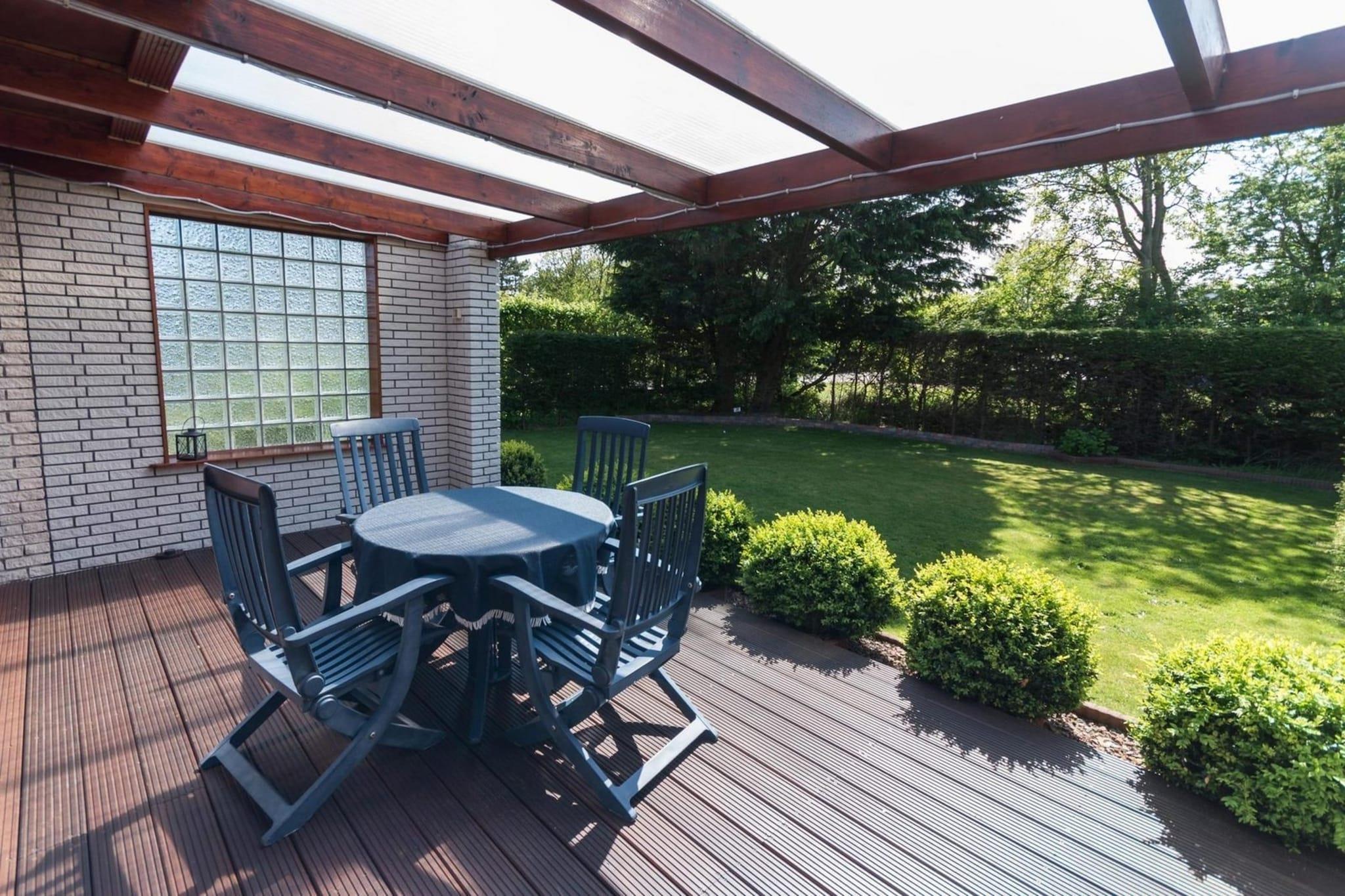 Stueetage: (Stue(Fjernsyn(Smart-TV, Tyske TV-kanaler), spisebord, sofahjørne), åbent køkken(kakkelovn(gas), kogeplade(gas), elkedel, brødrister, kaffemaskine(kaffetragt), ovn, opvaskemaskine , køle-fryseskab), soveværelse(dobbeltseng), badeværelse(bruser, håndvask, toilet)) På 1. etage: (soveværelse(enkeltseng)) tremmeseng, terrasse, have, barnestol