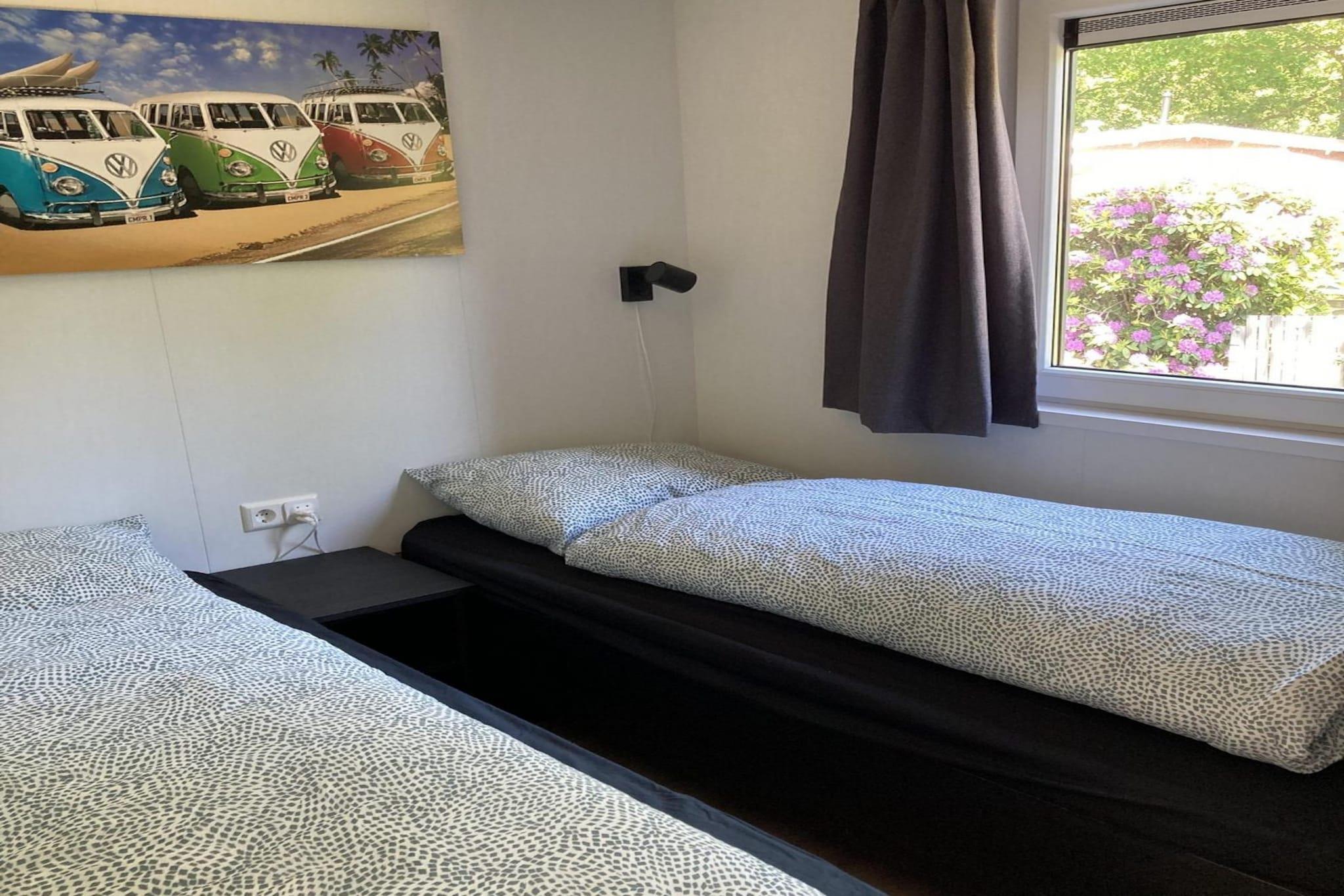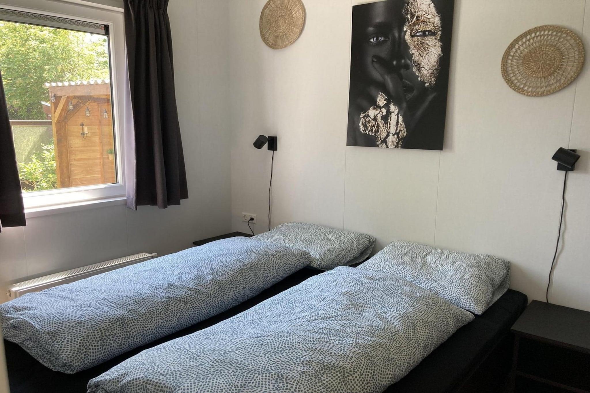Denne nybyggede hytte, beliggende i den fredfyldte Bungalow Park Campanula, ligger i cykelafstand fra den smukke sandstrand i Sint Maartenszee. Den moderne og stilfulde ejendom har to hyggelige soveværelser, en lys opholdsstue og et fuldt udstyret åbent køkken. Det komfortable opholdsområde har udsigt over den frodige have, mens et smart-tv med hollandske og tyske kanaler sørger for underholdning. Køkkenet indeholder gaskomfur, opvaskemaskine, køleskab med fryser, kombi-mikroovn, Nespresso-maskine og elkedel, hvilket sikrer et bekvemt ophold for op til fire gæster. Kæledyr og rygning er ikke tilladt i denne ejendom. Hyttens beliggenhed er ideel til at udforske den naturlige skønhed i Sint Maartenszee og det omkringliggende område. Blot en kort cykeltur væk venter sandstranden, perfekt til solbadning eller lange gåture ved kysten. Gæsterne kan også nyde de nærliggende parkfaciliteter, såsom en indendørs swimmingpool med gratis adgang. Andre faciliteter såsom sauna, minigolf og vaskeservice er tilgængelige mod et ekstra gebyr, hvilket gør dette til den perfekte base for afslapning og rekreation. Hytten byder på et moderne badeværelse med brusekabine, håndvask og toilet, mens hovedsoveværelset har en dobbeltseng med enkeltdyner og et rummeligt klædeskab. Det andet soveværelse har to enkeltsenge med komfortable lamelramme. Udenfor omfatter den 100 m² store have en flisebelagt terrasse, en frodig græsplæne og et overdækket loungeområde med en hyggelig siddeplads. Yderligere funktioner omfatter liggestole og et charmerende spisested. Sengetøjet er valgfrit og fås for EURO 13 p.p./Ophold.