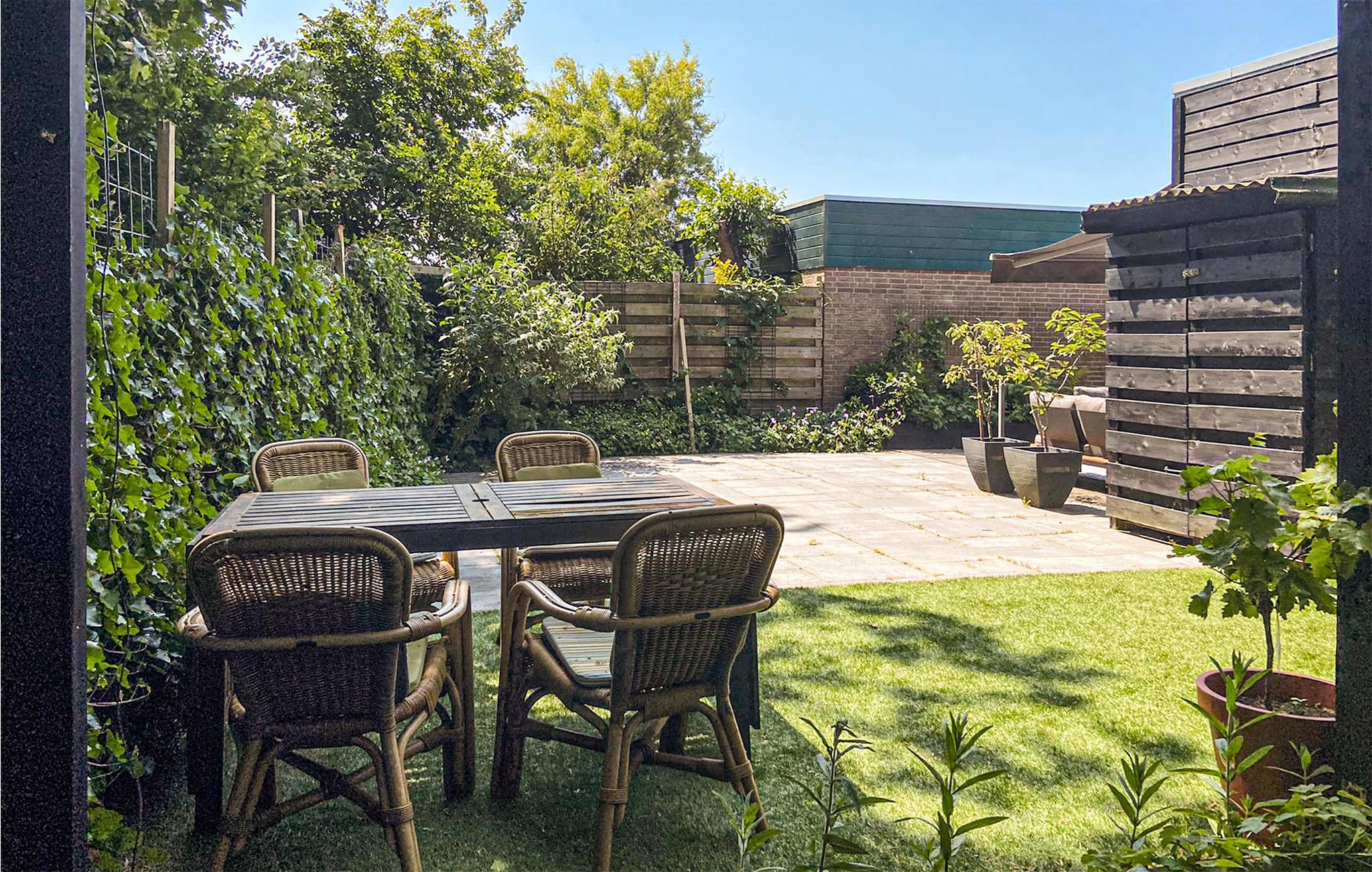 Fra stuen er der udgang til terrassen, hvor I kan nyde en kold drink i solen eller i skyggen. I den rummelige have finder I forskellige siddepladser, der inviterer jer til at blive hængende.