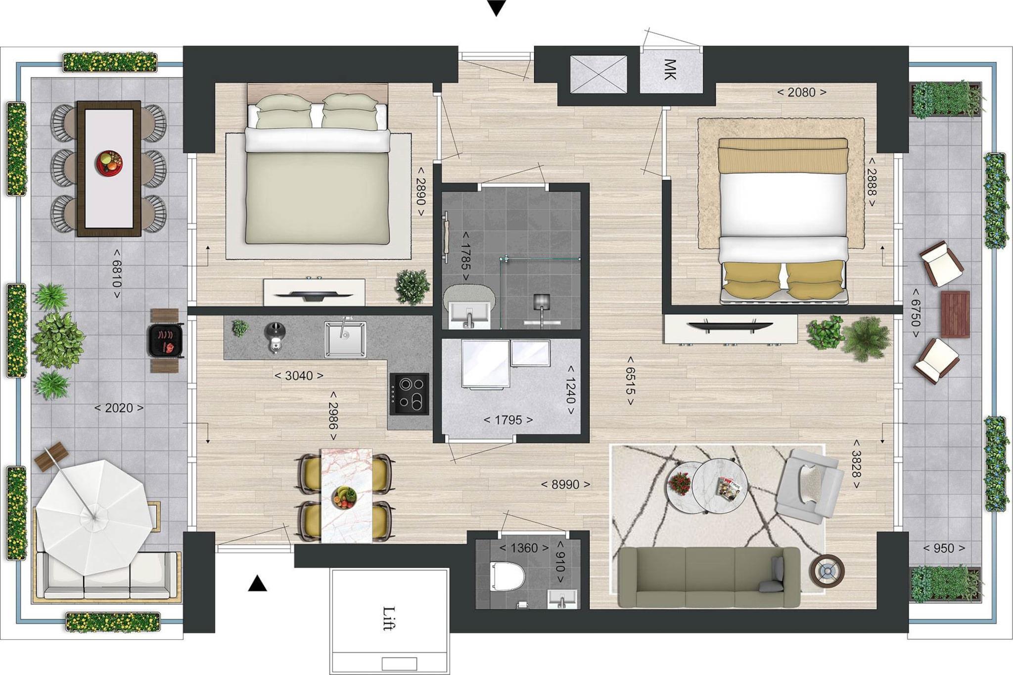 På 1. etage: (åbent køkken(elkedel, brødrister, kaffemaskine(kopper, kaffetragt), combi-mikroovn, opvaskemaskine , køleskab), stue / spisestue(Fjernsyn(Smart-TV, Internationale TV-kanaler), spisebord, sofahjørne), soveværelse(dobbeltseng(160 x 200 cm), Fjernsyn), soveværelse(dobbeltseng(160 x 200 cm)), badeværelse(bruser, håndvask, toilet)) pulterkammer, balkon, klimaanlæg, havemøbler, parkering, elevator, barneseng, barnestol