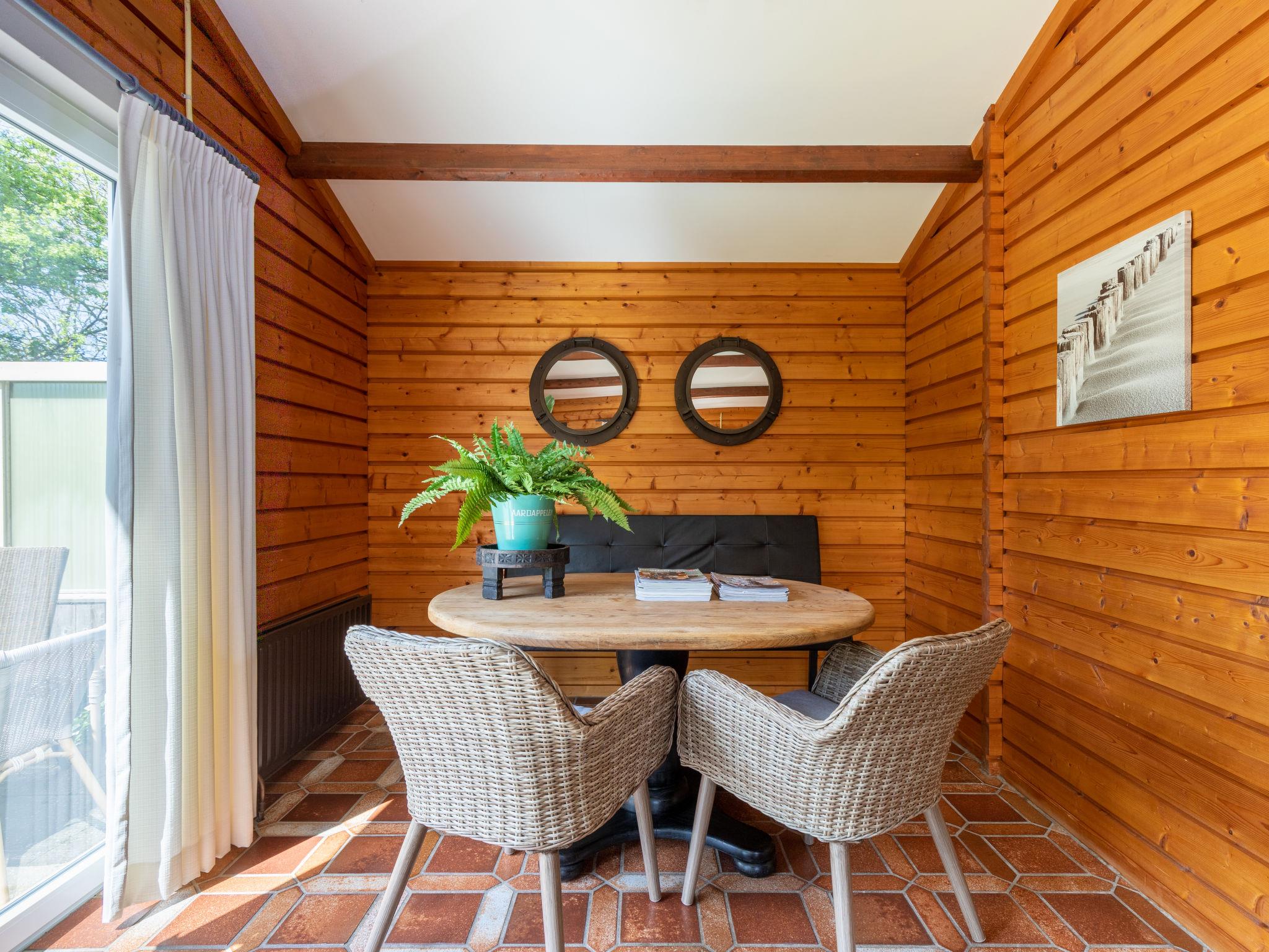 "Rusthoeve 28", 3-room chalet 60 m2. Practical and wooden furniture furnishings: open living/dining room with TV. Exit to the garden. 1 room with 1 french bed. 1 room with 1 x 2 bunk beds. Open kitchen (4 hot plates, dishwasher, microwave, electric coffee machine). Shower/WC. Heating, floor heating. Terrace, garden. Terrace furniture. Facilities: Internet (WiFi, free). Please note: non-smokers only. Smoke alarm.