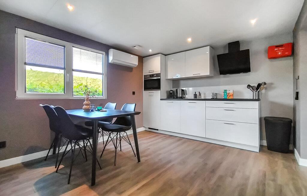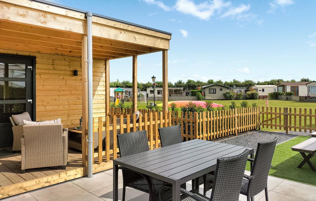 Der er lagt op til nogle herlige feriedage i dette moderne, smagfulde feriehus, som ligger på en campingplads.