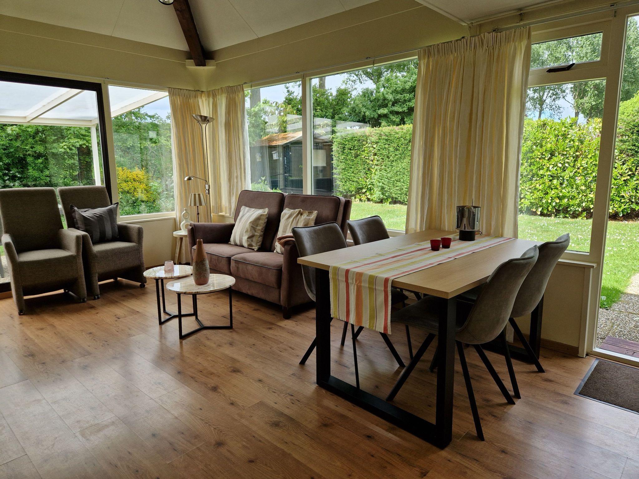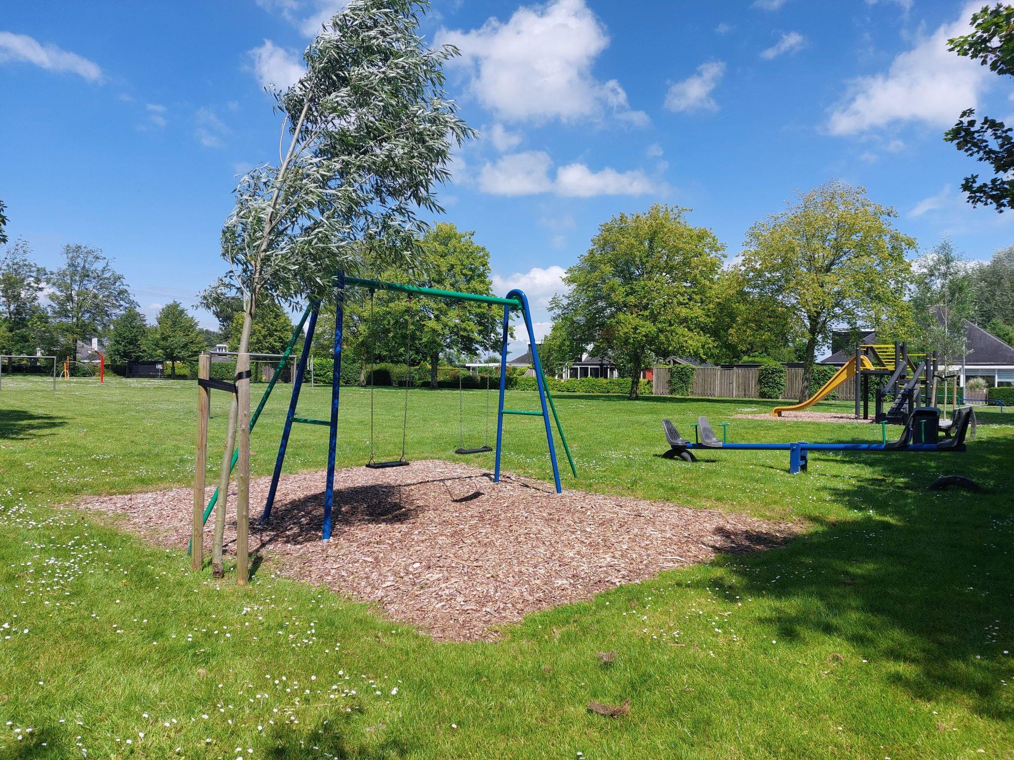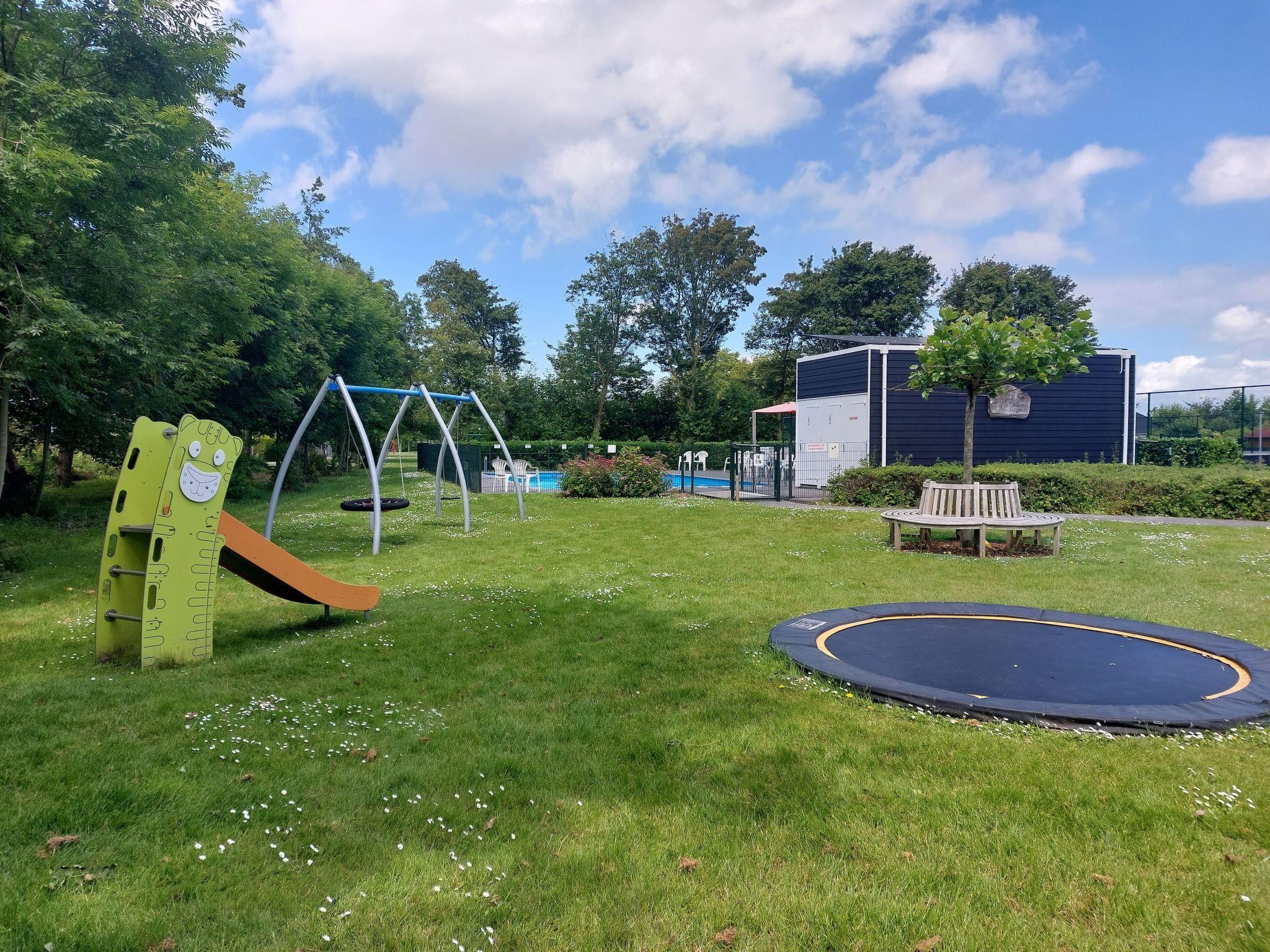 The spacious, sunny garden is fully fenced and offers plenty of privacy, making it ideal for dogs and small children. A large, covered veranda next to barbecue facilities, a dining table for six and sun loungers invite you to spend relaxing hours outdoors. The holiday park in which the bungalow is located is car-free (except for the car park areas) and offers a seasonal swimming pool, playground, trampoline and other amenities as well as a restaurant with an outdoor terrace.