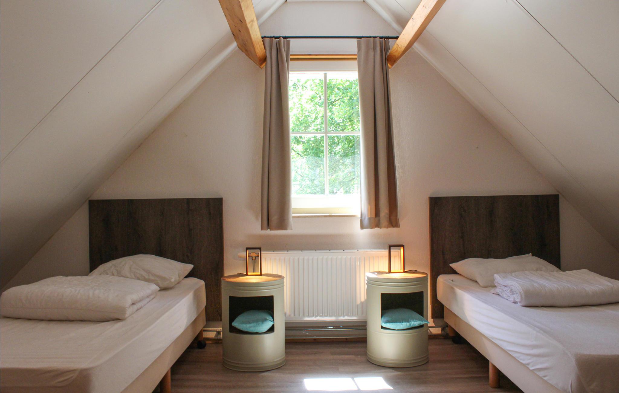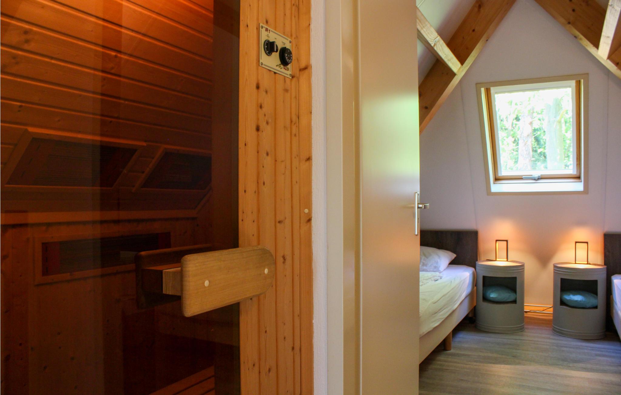 På en ejendom på ikke mindre end 14 ha og på grænsen til Overijssel, Friesland og Drenthe er der 7 smukke og rummelige feriehuse. Dette hus har en infrarød sauna, er smagfuldt og komfortabelt møbleret og fuldt udstyret inklusive WiFi, fladskærms-tv, opvaskemaskine og mikrobølgeovn. Huset er velegnet til op til 6 personer og byder på meget privatliv på grund af de skovklædte omgivelser. I stueetagen er der et soveværelse og et badeværelse med bruser og badekar. De andre to soveværelser og den infrarøde sauna er på første sal.