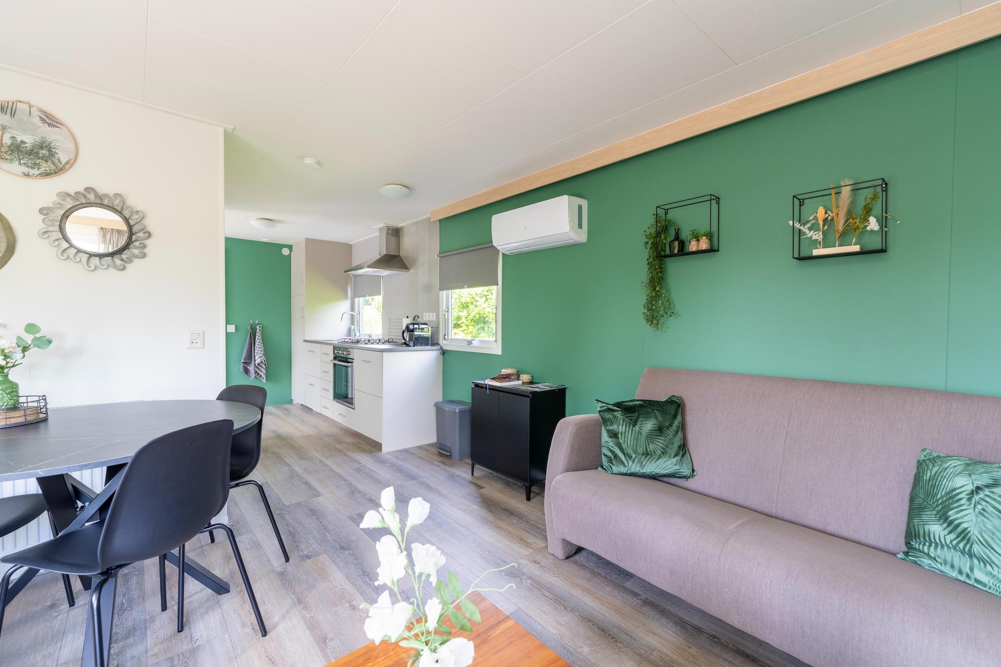 Charmerende tilbagetog midt i naturen Gemt væk i Stegerens fredfyldte landskab tilbyder dette dejlige feriehus en fredelig tilflugtssted omgivet af grønne områder. Med et rummeligt åbent køkken, hyggelig opholdsstue og privat haveterrasse er det et ideelt tilflugtssted for familier eller små grupper. Nyd en afslappende morgenkaffe i haven, slap af med en bog, eller lad blot børnene lege frit, mens du nyder roen. Aircondition sikrer komfort under varme sommerdage, og privatlivets fred er garanteret i disse rolige omgivelser. Naturskønne eventyr venter Denne hytte ligger på den naturskønne Berghorst-ejendom i en af Nord-Overijssels mest maleriske regioner. Fra vidtstrakte hedeområder til frodige skove, vil naturelskere finde endeløse stier til gå- og cykelture. Den charmerende by Ommen er i nærheden til shopping og gåture langs floden, mens byer som Almelo og Zwolle er perfekte til en kulturel dagstur. Uanset om du søger udendørs udforskning eller stille landsbycharme, har denne beliggenhed det hele. Spis og oplev lokale smagsoplevelser Fra rustikke caféer til fine restauranter byder området på en lækker blanding af kulinariske muligheder. Prøv lokale favoritter på De Kombuys eller nyd regionale specialiteter på Restaurant Streekeigen. For noget unikt serverer Restaurant Wollegras og De Buur'n sæsonbestemte lækkerier i hyggelige, indbydende atmosfærer. Kun få minutter fra hytten gør disse spisesteder hver aften til en lækkerbisken.