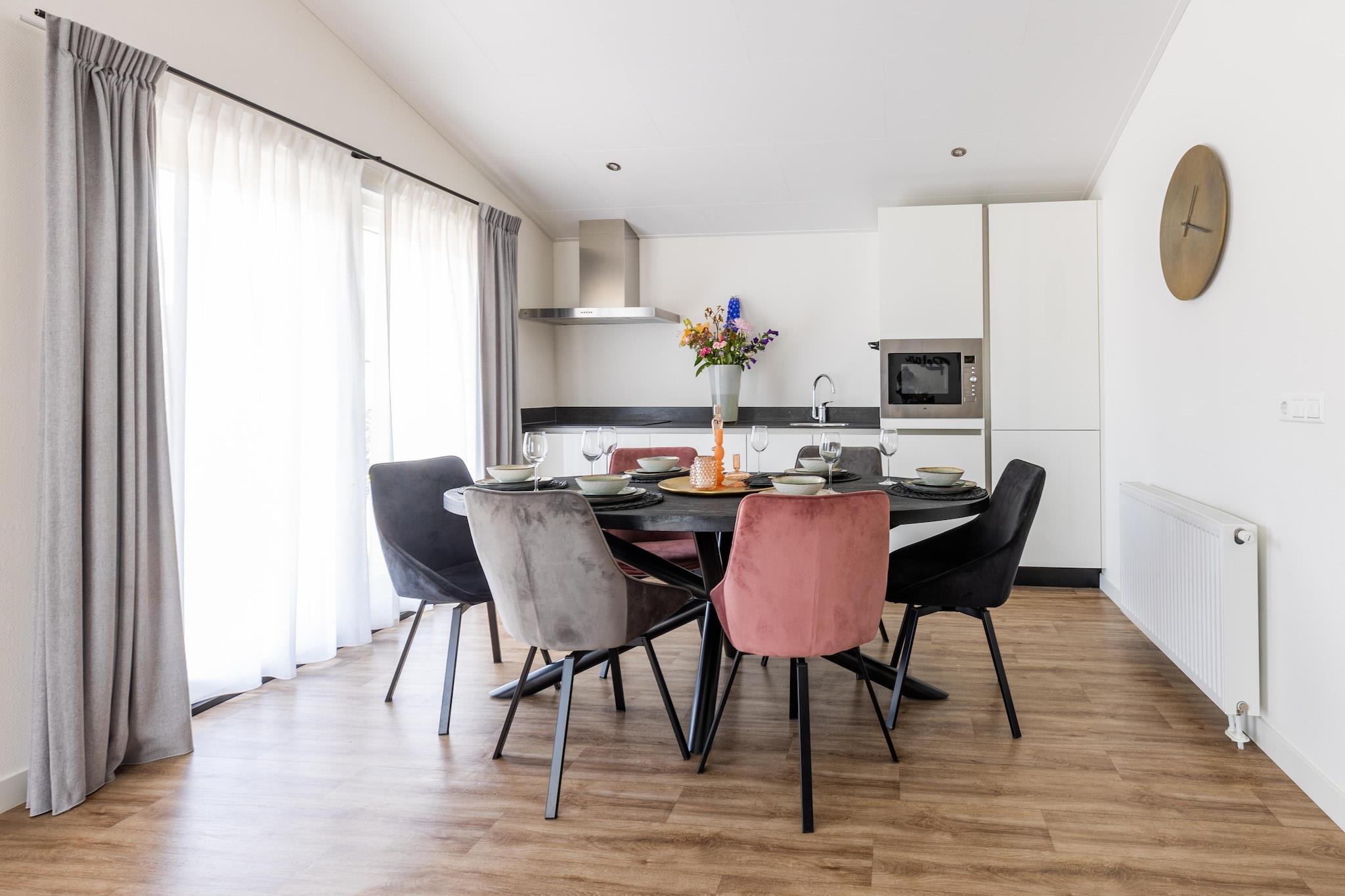 Moderne komfort med en fredfyldt udsigt over vandet Velkommen til dit stilfulde tilflugtssted ved dammen i hjertet af Nordbrabant! Denne lyse, moderne hytte byder på højt til loftet, store vinduer og et gennemtænkt designet interiør, der blander elegance med hyggelig charme. Med tre rummelige soveværelser med boksmadrasser, et elegant åbent køkken og et lyst opholdsområde er dette ophold perfekt til familier, par eller små grupper. Nyd din morgenkaffe på terrassen ved vandet, omgivet af rolig natur og fuglesang. Kæledyrsvenligt paradis i Veldhoven Tag dine lodne venner med - denne hytte er fuldstændig kæledyrsvenlig! Den nærliggende Veldhoven Heide og City Park De Polders tilbyder naturskønne vandreruter, perfekt til leg og frisk luft med din hund. For en mere social oplevelse, besøg Hondenspeeltuin de Splinter i Eindhoven, kun en kort køretur væk, hvor hunde kan løbe frit i sikre, lukkede naturzoner. Lokale smage kun få minutter væk Når det er tid til at spise ude, er du forkælet med valg. Prøv lokale favoritter som De Burgemeester til udsøgte middage eller Brownies & downies til en afslappet brunch – mange med kæledyrsvenlige terrasser. Efter dit måltid kan du udforske Veldhovens maleriske butikker eller slappe af ved den fælles udendørs pool tilbage i parken. Dette er din perfekte blanding af natur, komfort og fællesskab - alt sammen kun få minutter fra Eindhoven!