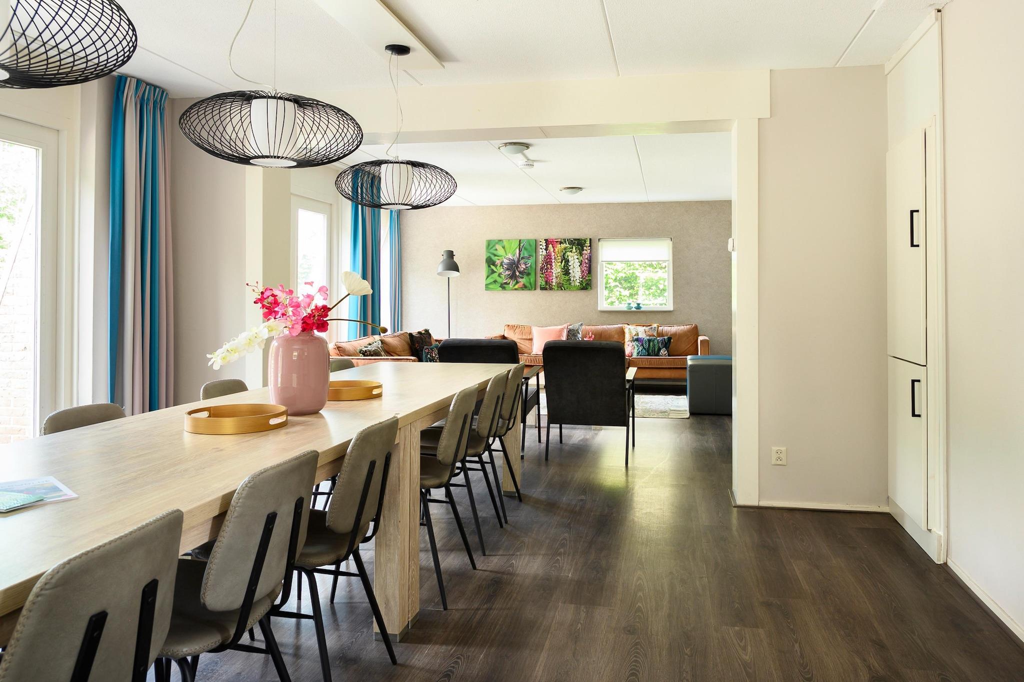 Dette hyggeligt indrettede familie- og vennerhus ligger i udkanten af skoven. Det er ideelt til en ferie med en stor gruppe venner eller familier. Huset har wellness-faciliteter såsom et brændefyret spabad i haven og en finsk sauna med lysterapi og infrarøde varmeovne Det lyse, solrige hus er moderne og praktisk indrettet. Nedenunder er der 2 soveværelser og 2 badeværelser, ovenpå er der 4 soveværelser, 2 med altaner og 2 badeværelser. Huset ligger på et lille hegn i skovbrynet og en kort gåtur fra den subtropiske swimmingpool. Vlagtwedde er kendt for sit maleriske landskab, rige historie og kulturarv. Det ligger tæt på grænsen til Tyskland og er omgivet af skove , enge og floder Du kan nyde gåture, cykle og fiske i de nærliggende naturreservater. Den solrige have har en stor og rummelig terrasse med et luksuriøst loungesæt, 2 luksuriøse liggestole, et picnicbord, et barbord med 4 stole og en udendørs pejs/grill. For børnene er der en legeplads med en sandbanke og en trampolin. Der er en badestige i vandet bag huset. Der er også 2 SUP boards til rådighed, med hvilke du kan gå direkte på vandet fra huset.