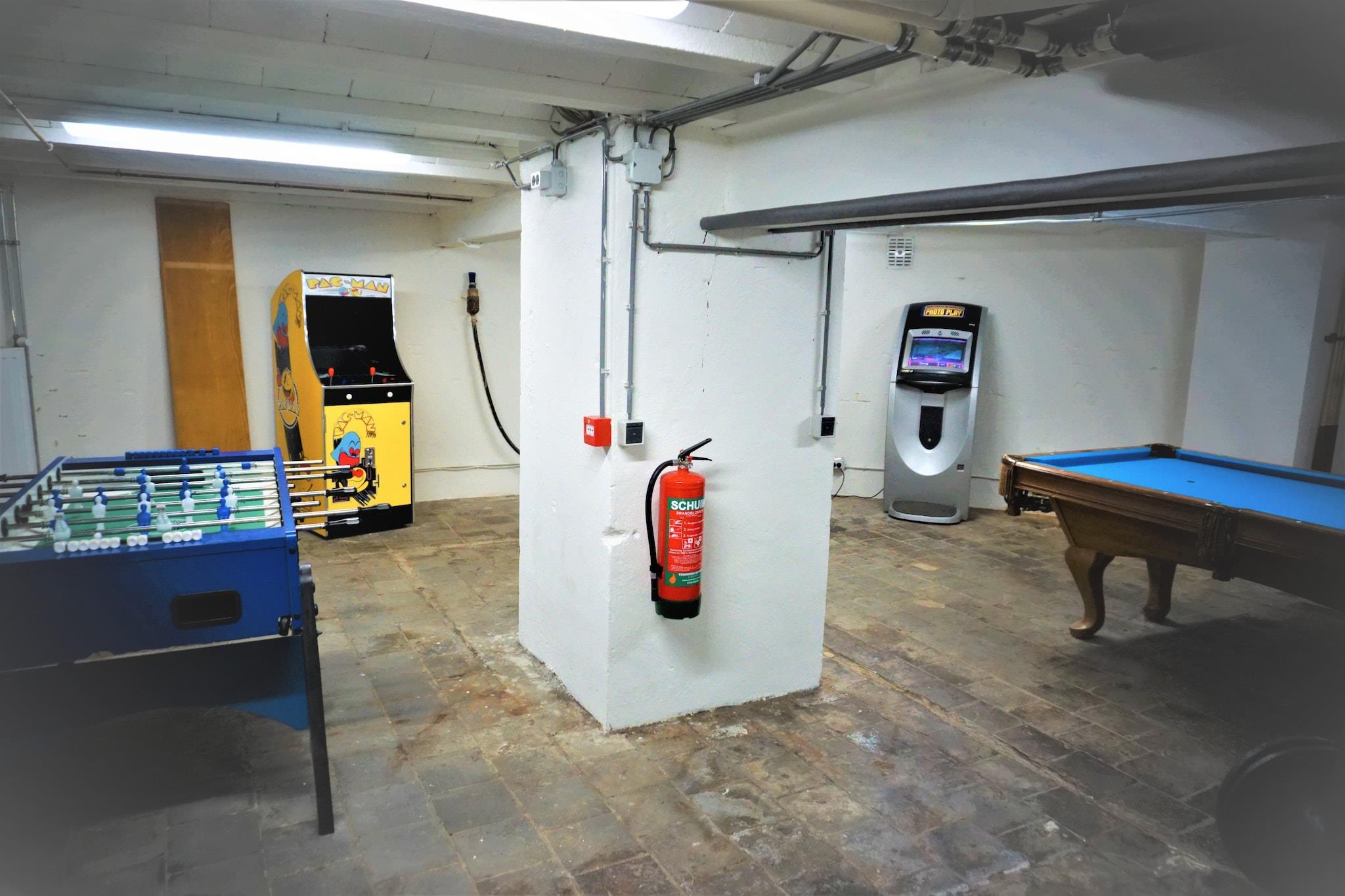 Ground floor: (Living room(TV(flatscreen, international television channels), fireplace, seating area), Large kitchen(dining table, cooker(gas), coffee machine(cups, filter), 2x oven, microwave, dishwasher, fridge-freezer)) On the 1st floor: (bedroom, bathroom(2x double bed box(80 x 200 cm), shower)) On the 2nd floor: (bedroom(2x single bed), bedroom(2x single bed), bathroom(shower(walk-in shower))) On the 3rd floor: (bedroom(2x single bed), bedroom(2x single bed), bathroom(bath tub, sauna)) On the 4th floor: (bedroom(2x single bed), bedroom(2x single bed)) Basement: (game computer, tumble dryer, washing machine, billiards) terrace(private), garden(private, fenced, 800 m2), garden furniture, BBQ, parking, children's bed, high chair, Charging post for electric cars