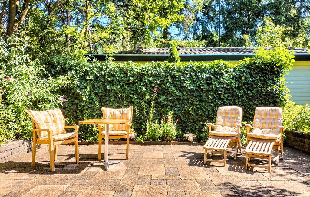 Det velholdte feriehus er pænt indrettet i varme og lyse farver. Udenfor har feriehuset en skøn have med terrasse og havemøbler. Stuen med åbent køkken har en udgang til terrassen. Feriehuset har et soveværelse og badeværelse med bruser, toilet og håndvask. Skuret har plads til cykler. Da de skønne omgivelser byder på mange vandremuligheder, er dette feriehus det rigtige valg til en ferie med hunde. Den indbydende feriepark har en fremragende beliggenhed og omfatter en restaurant, en stor legeplads og et stort børnebassin med legeredskaber. En offentlig udendørspool ligger kun få minutters gang fra ferieparken.