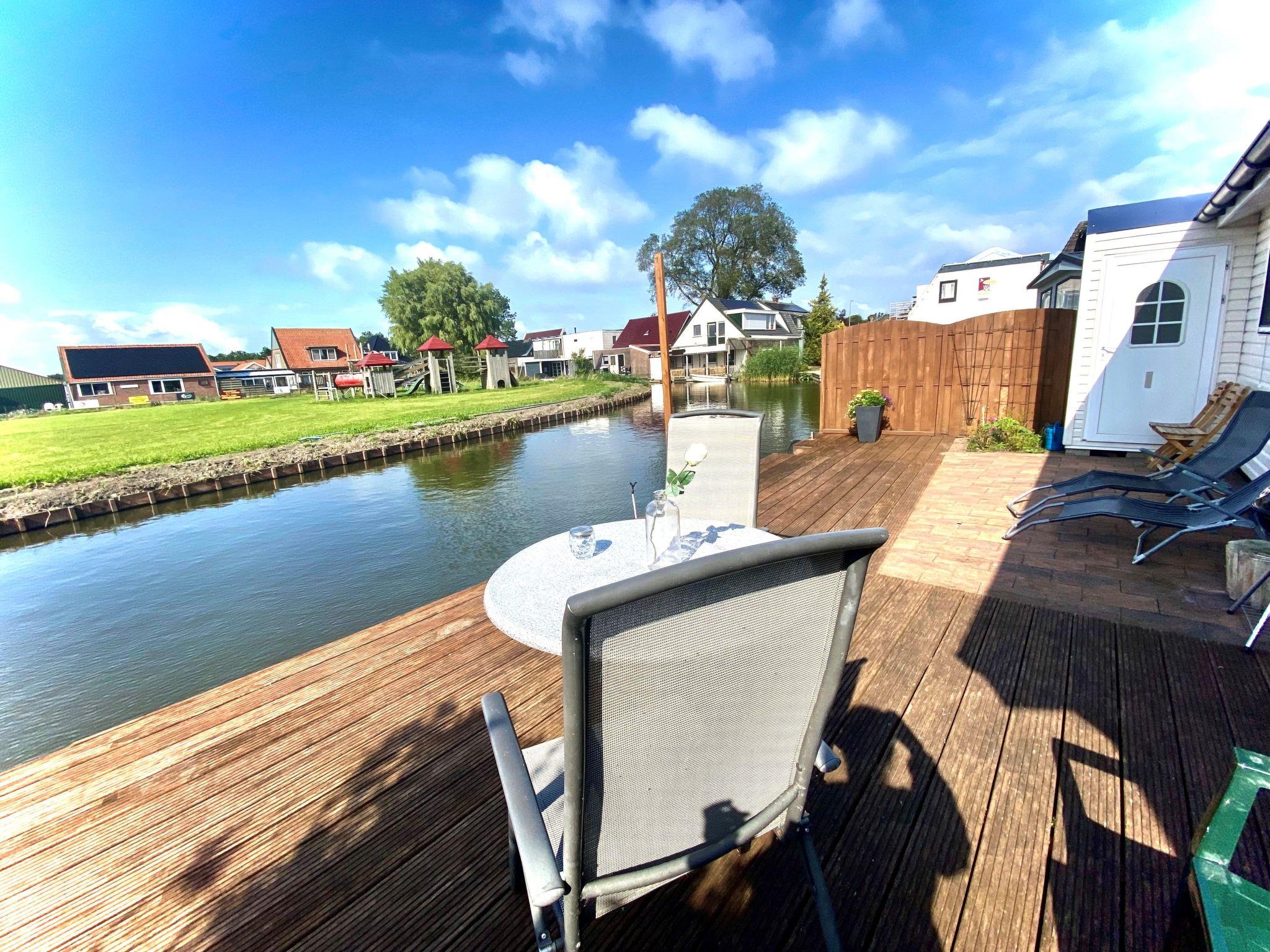 Garden / terrace: A sunny and beautifully landscaped terrace right by the water with a garden table, 4 chairs and 2 wellness loungers. The property is beautifully landscaped and completely fenced. The lake, the Groote Vliet with a bathing jetty, is only about 50 metres away on foot.