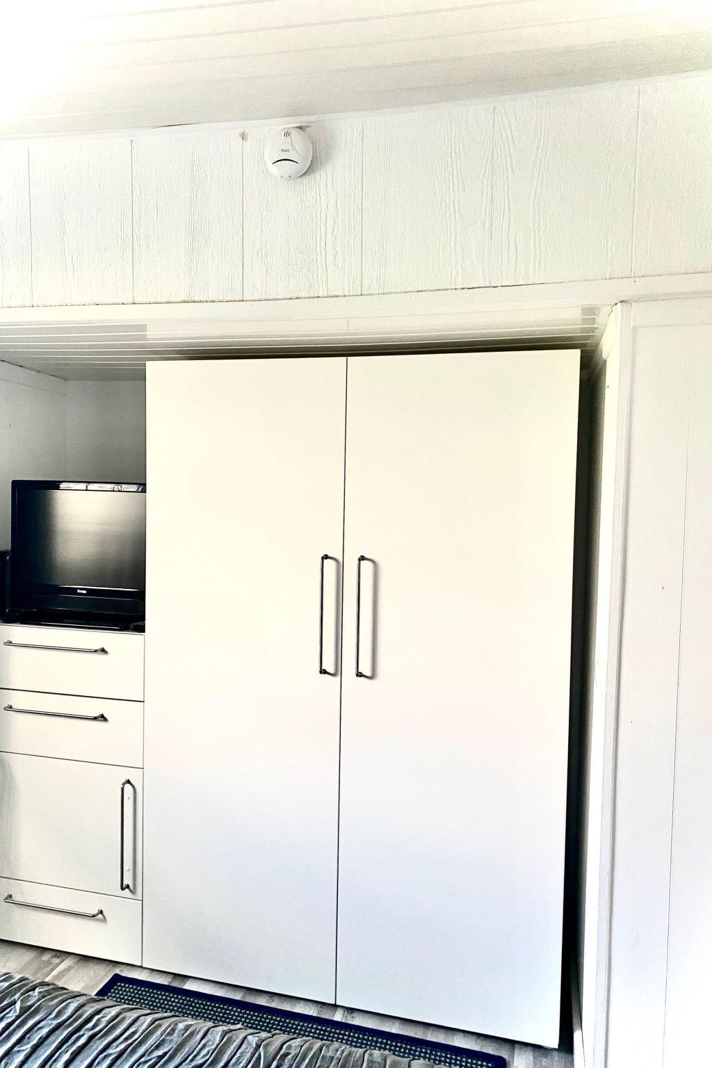 Holiday home "Isabella" has a living and dining area with kitchenette, a bathroom and two bedrooms. The living area is equipped for 4 persons and has two flat screen televisions (one of them in the bedroom) with satellite connection (German programmes) The building is located on a square with its own jetty directly at the house to the lake "Groote Vliet" and it is not visible from other neighbours. Free WLAN. Kitchen: a kitchen equipped for 4 people with fridge, 4-burner gas hob, filter coffee machine, toaster, kettle, microwave, charcoal grill in the garden. The beds: Bedroom 1: 1 double bed (160x200cm), anti-allergic mattress, TV, wardrobe, Bedroom 2: 1 bunk bed with 2 sleeping places (80x200cm), chest of drawers Living room: 1 sofa bed)