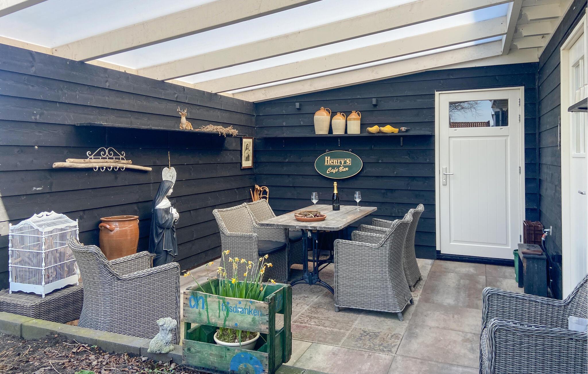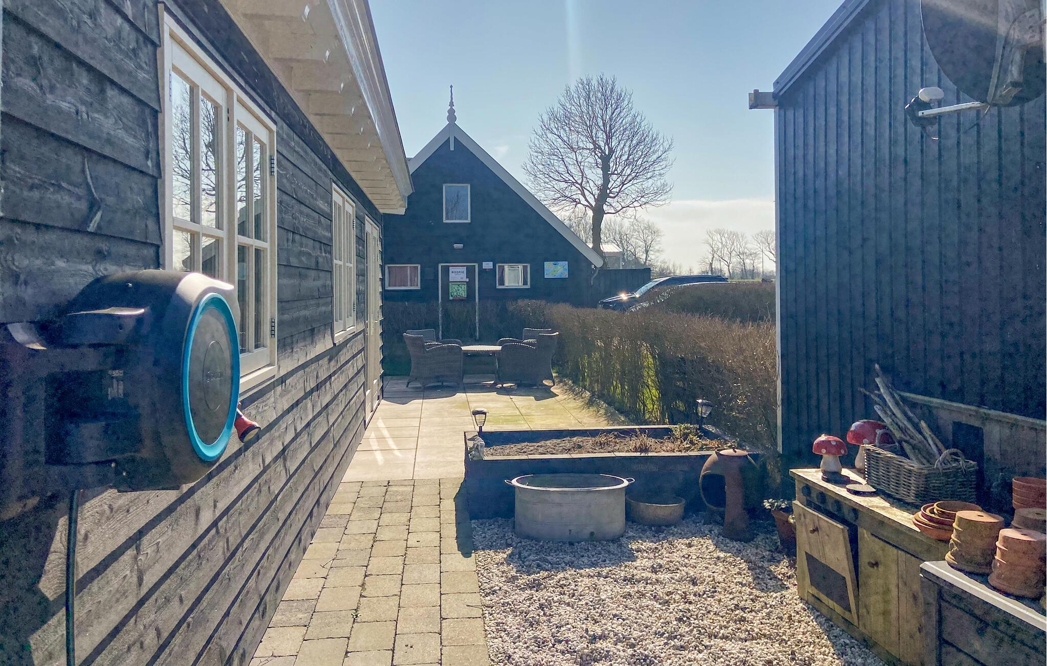 Nyd den friske luft i det rummelige udendørsområde. Find jer godt til rette på den solrige terrasse eller tag plads i det overdækkede opholdsområde med et rustikt træbord. Afslut dagen med et glas vin og nyd de fredelige omgivelser.