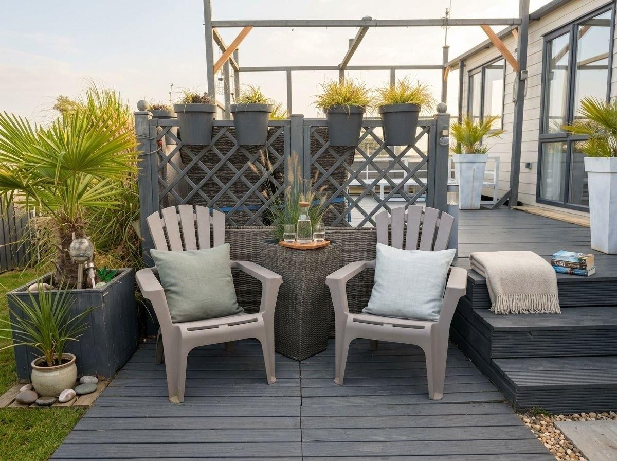 Die großzügige, teils windgeschützte Terrasse ist ein echtes Highlight. Hier genießen Sie den Sonnenuntergang oder starten mit einer Tasse Kaffee in den Tag.