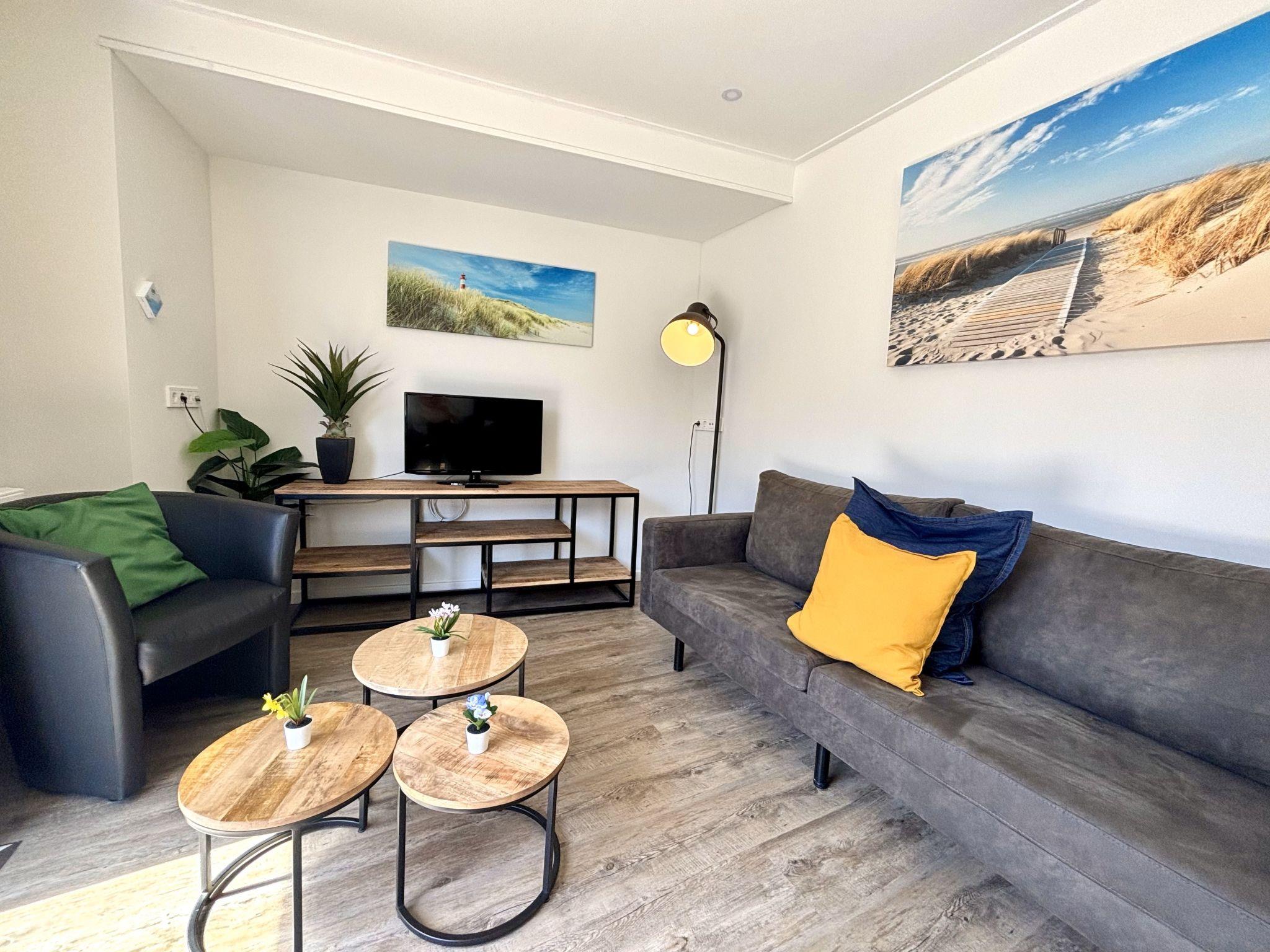 "Beach House Westkapelle 105.1", 3-room apartment on the ground floor. Comfortable furnishings: living/dining room with dining table, bar and TV. Exit to the terrace. 2 rooms, each room with 2 beds. Open kitchen (oven, dishwasher, 4 induction hot plates, kettle, freezer, electric coffee machine, combination microwave). Shower, sep. WC, Sauna. Heating. Terrace. Terrace furniture, box-room. Facilities: children's high chair, baby cot. Internet (WiFi, free). Parking at the house. Please note: smoke alarm. A deposit of 100 EUR per person can be charged on site.