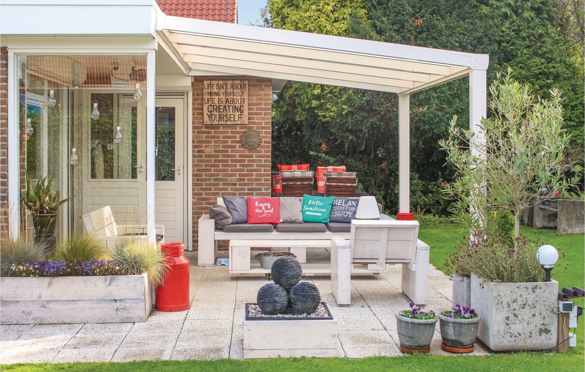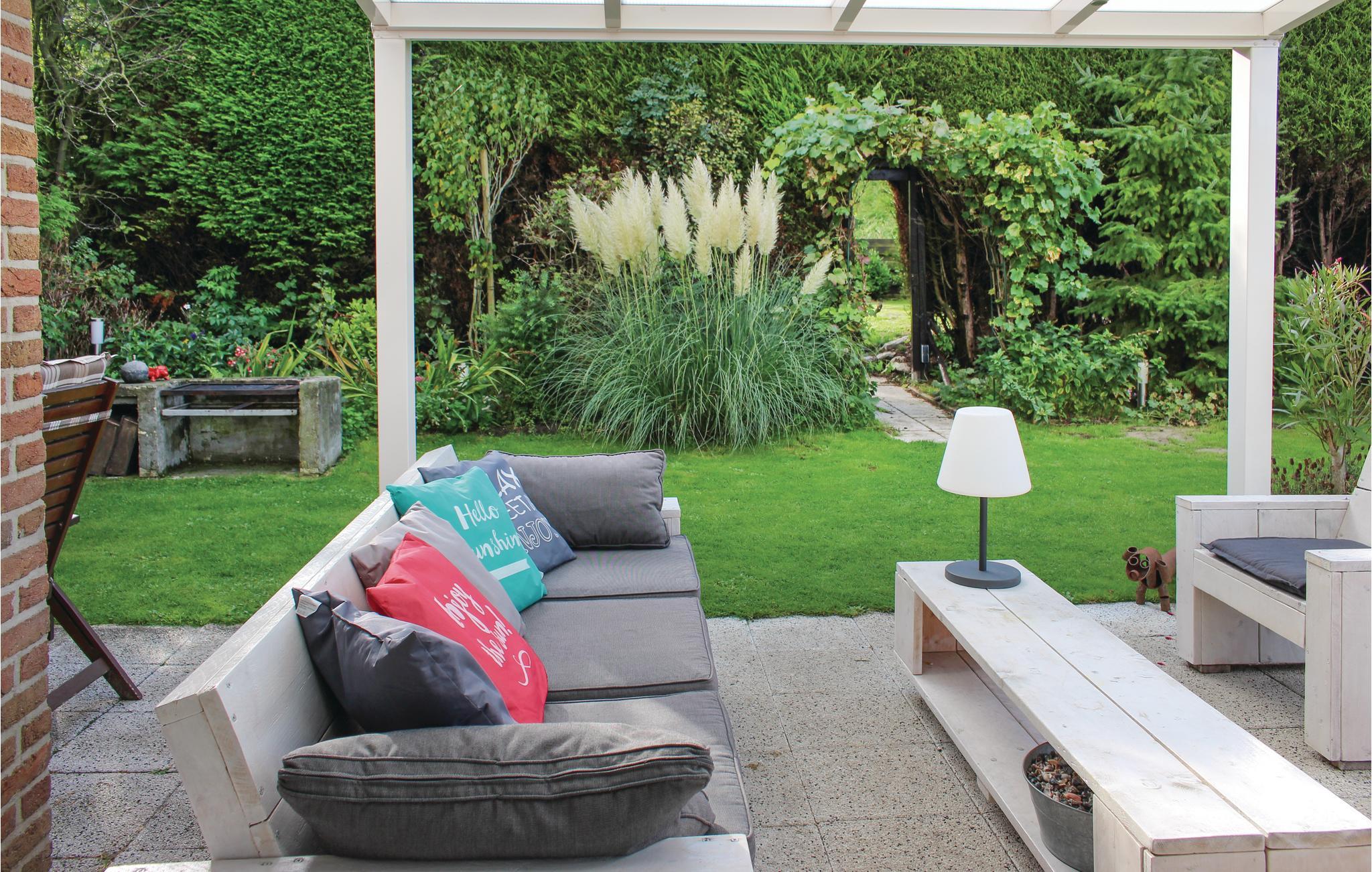 Hyggeligt indrettet feriehus til fire personer i Wolphaartsdijk, Zeeland. Feriehuset ligger i en smukt anlagt have med et væld af blomster og planter i alle farver. Jeres husdyr er hjerteligt velkomne i denne bolig, der netop er indrettet dyrvenligt. Feriehuset ligger i en helt indhegnet have, og den høje vegetation gør jeres udendørs ophold meget ugenert. På loungesofaen kan I sidde hele den lune sommeraften. Køkkenet er fuldt udstyret, og grænser op til stuen. Gennem mange vinduer er der udsigt til haven De to soveværelser rummer to enkeltsenge og en etagesenge og i badværelset er der et brusebade. Haven er delt i to. Fra den bageste del ar der direkte udgang til diget ved Veerse See. Her kan I både tage svømmeture og bare slappe af i solen.