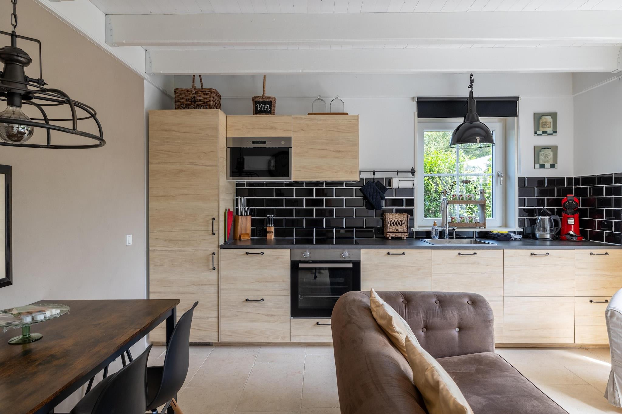 Denne fritliggende bolig tilbyder et vidunderligt fredeligt tilbagetog med absolut privatliv. Beliggende i en stille blind vej kan du nyde det bedste fra begge verdener: roen og komforten i et fritliggende hus med en dejlig have, men alligevel inden for gåafstand af alle de faciliteter, som badebyen tilbyder. Kun en kort gåtur fra din hoveddør ligger de fortryllende strande, supermarkedet, det livlige centrum og et bredt udvalg af restauranter. Træd indenfor i dette charmerende hjem og bliv budt velkommen af en landlig, klassisk atmosfære, der minder om et autentisk vognskur. Stuen er komfortabelt indrettet med en dobbelt sofa og en separat stol omkring sofabordet i tv-hjørnet. Spisebordet har tre stole og en skammel til hyggelige måltider. Det åbne køkken er fuldt udstyret med moderne apparater, herunder induktionskomfur, mikroovn, ovn, opvaskemaskine, køleskab, fryser, brødrister, Senseo-kaffemaskine, kedel og Quooker, så alle dine madlavningsbehov bliver dækket. Det første toilet er bekvemt placeret i stueetagen. På første sal finder du soveværelset og det tilstødende badeværelse. Soveværelset er et fredeligt tilflugtssted med en komfortabel dobbeltseng med boksmadras (160x200 cm), et hyggeligt opholdsområde med en enkel sovesofa, der er velegnet til et barn, og et ekstra fjernsyn for ekstra underholdning. Et rummeligt klædeskab, hylder og et spejl i fuld længde fuldender rummet, mens sengelamperne giver både funktionel og stemningsfuld belysning. Det åbne badeværelse tilbyder ultimativ komfort med en walk-in regnbruser, et ekstra toilet og en dobbelt håndvask. For ekstra bekvemmelighed er der et opbevaringsrum med vaskemaskine i stueetagen. Denne bolig er også velegnet til familier, der rejser med små børn op til 2 år.