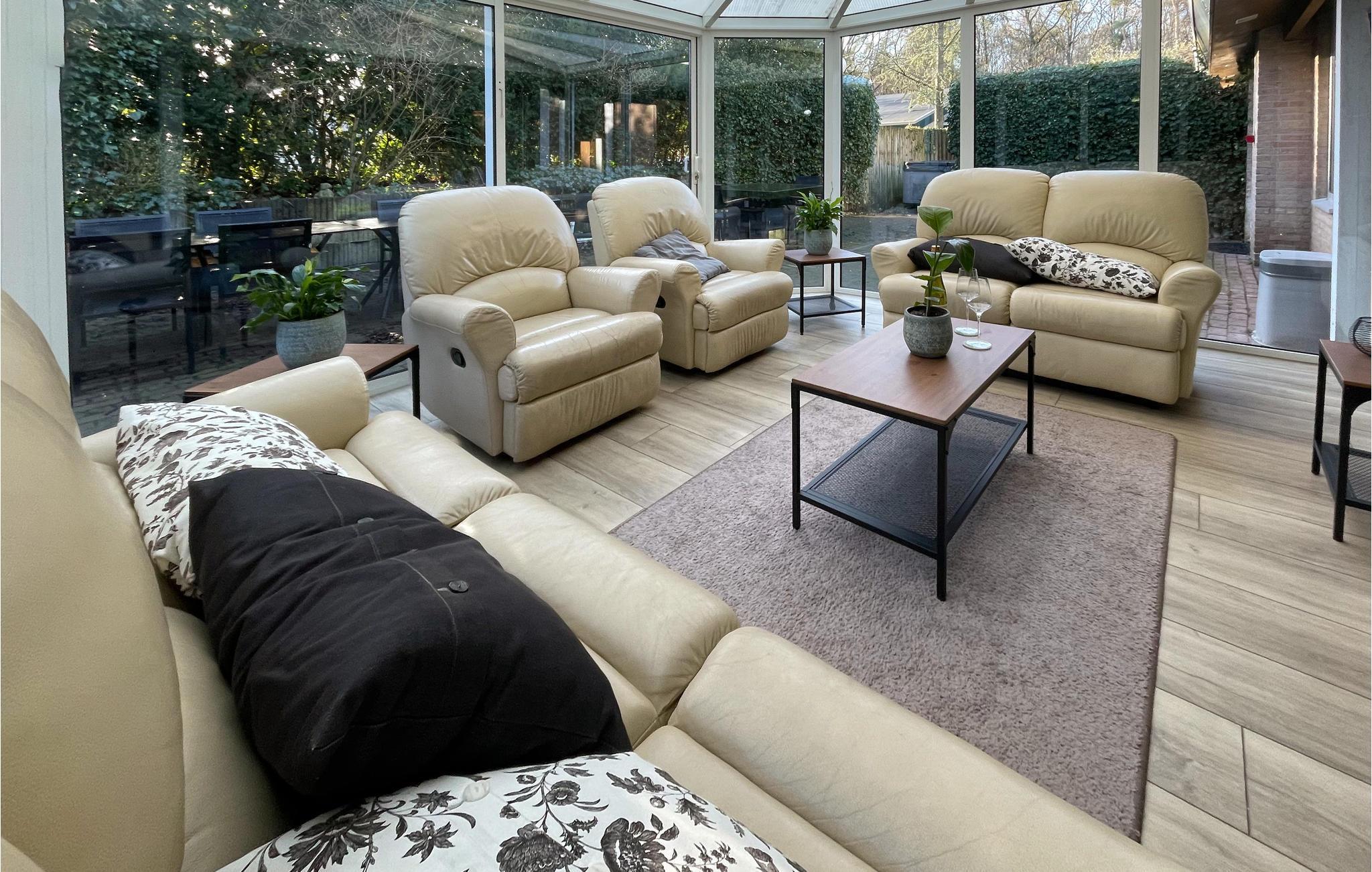 Tilbring på en afslappende ferie sammen med den udvidede familie eller jeres gode venner. Den rummelige bolig ligger i et lille boligområde, omgivet af skov, enge, marker og vand. Her kan I føle jer godt tilpas og samles i fællesrummene, slappe af og have gode samtaler i vinterhaven. Det store bord er optimalt til lange middage og brætspil.
