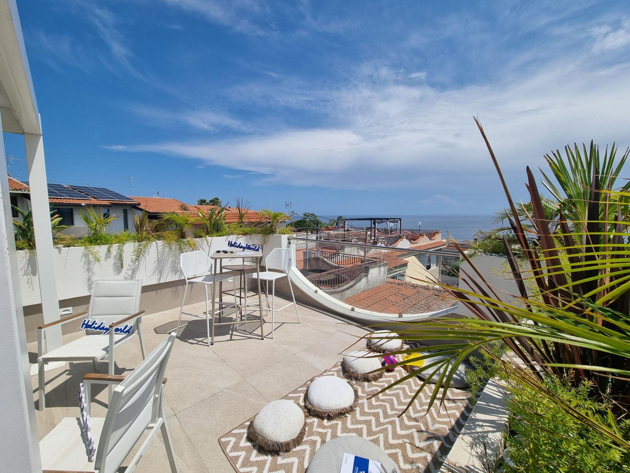 Antigua is a modern and functional flat located in Aci Castello (CT). The accommodation is distinguished by its spacious and bright ambience, characterised by elegant arches and a large window offering a panoramic view of the sea. The well-distributed living room includes a fully equipped kitchenette and a dining area with a stone table, creating a warm and inviting atmosphere. In addition, the single sofa bed is perfect for an adult and a child, adding further comfort to the home. A further highlight of the property is the terrace for shared use. This outdoor space is a true oasis of relaxation, equipped with a Jacuzzi for four, an outdoor shower, an outdoor kitchen with barbecue and a large table and chairs. There is also a gazebo with a corner sofa, outdoor armchairs, stools and parasols, all designed for maximum comfort and practicality. From this terrace, the view is spectacular: the sea in front and Mount Etna looming majestically in the background. Here, every sunset becomes an unforgettable moment, with ever-changing panoramas, offering a unique natural spectacle. Its location, a short walk from the centre of Aci Castello, makes it easy to explore the village, a fascinating corner of the eastern coast of Sicily, offering breathtaking views of the sea and Mount Etna. For nature and adventure lovers, Aci Castello is also the ideal starting point for exploring Mount Etna, one of the most active volcanoes in the world. Here you can go hiking, trekking and other outdoor activities, immersing yourself in incredible panoramas ranging from wilderness to spectacular views of the coast and crater. Whether you are looking for tranquillity or adventure, Suite Antigua offers the perfect setting for a relaxing holiday full of memorable experiences.