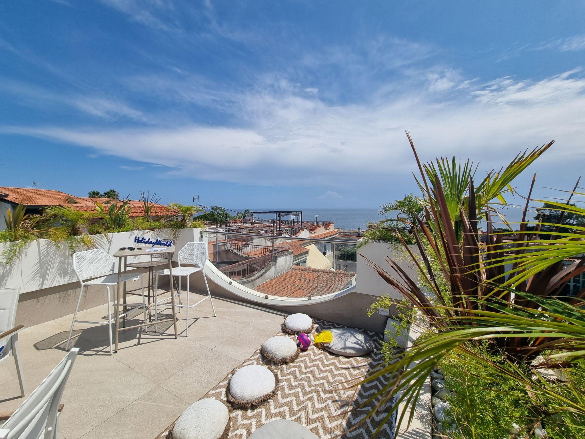 Saint Barth is a modern and functional flat located in Aci Castello (CT). The apartment is distinguished by its spacious and bright ambience, characterised by elegant arches and a large window offering a panoramic view of the sea. The well-distributed living room includes a fully equipped kitchenette and a dining area with table, creating a warm and inviting atmosphere. In addition, the single sofa bed is perfect for an adult and a child, adding further comfort to the home. A further highlight of the property is the terrace for shared use. This open-air space is a true oasis of relaxation, equipped with a Jacuzzi for four, an outdoor shower, an open-air kitchen with barbecue and a large table and chairs. There is also a gazebo with a corner sofa, outdoor armchairs, stools and parasols, all designed for maximum comfort and practicality. From this terrace, the view is spectacular: the sea in front and Mount Etna looming majestically in the background. Here, every sunset becomes an unforgettable moment, with ever-changing panoramas, offering a unique natural spectacle. Its location, a short walk from the centre of Aci Castello, makes it easy to explore the village, a fascinating corner of the eastern coast of Sicily, offering breathtaking views of the sea and Mount Etna. For nature and adventure lovers, Aci Castello is also the ideal starting point for exploring Mount Etna, one of the most active volcanoes in the world. Here you can go hiking, trekking and other outdoor activities, immersing yourself in incredible panoramas ranging from wilderness to spectacular views of the coast and crater. Whether you are looking for tranquillity or adventure, Suite Antigua offers the perfect setting for a relaxing holiday full of memorable experiences.