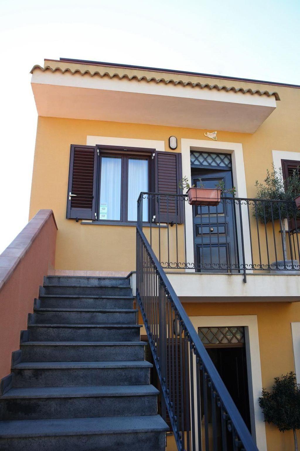 The house is furnished in Sicilian style, there are lots of colours and typical local souvenirs. The atmosphere is warm thanks to the yellow colour c. There is a terrace with a view of Mount Etna , where you can have your meals , or where you can lie down and sunbathe . There is a garage and private parking .The house is equipped with electrical appliances and linen .