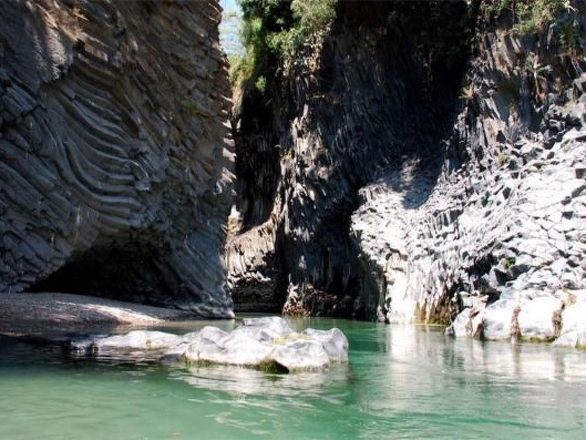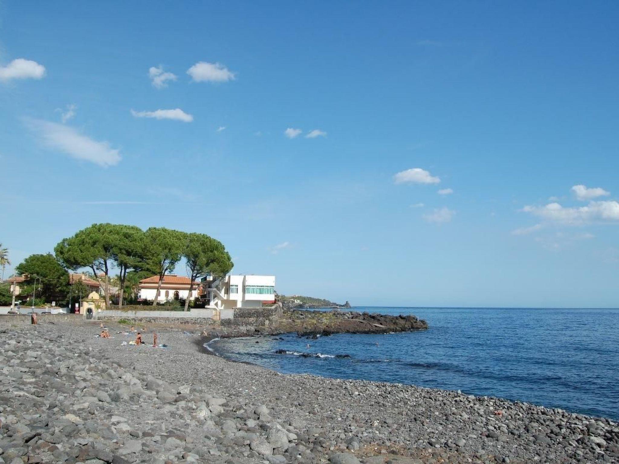 The terrace is furnished with a table and chairs. The apartment is on the same level as the garden and affords views of Etna, the sea and the garden of the residence.