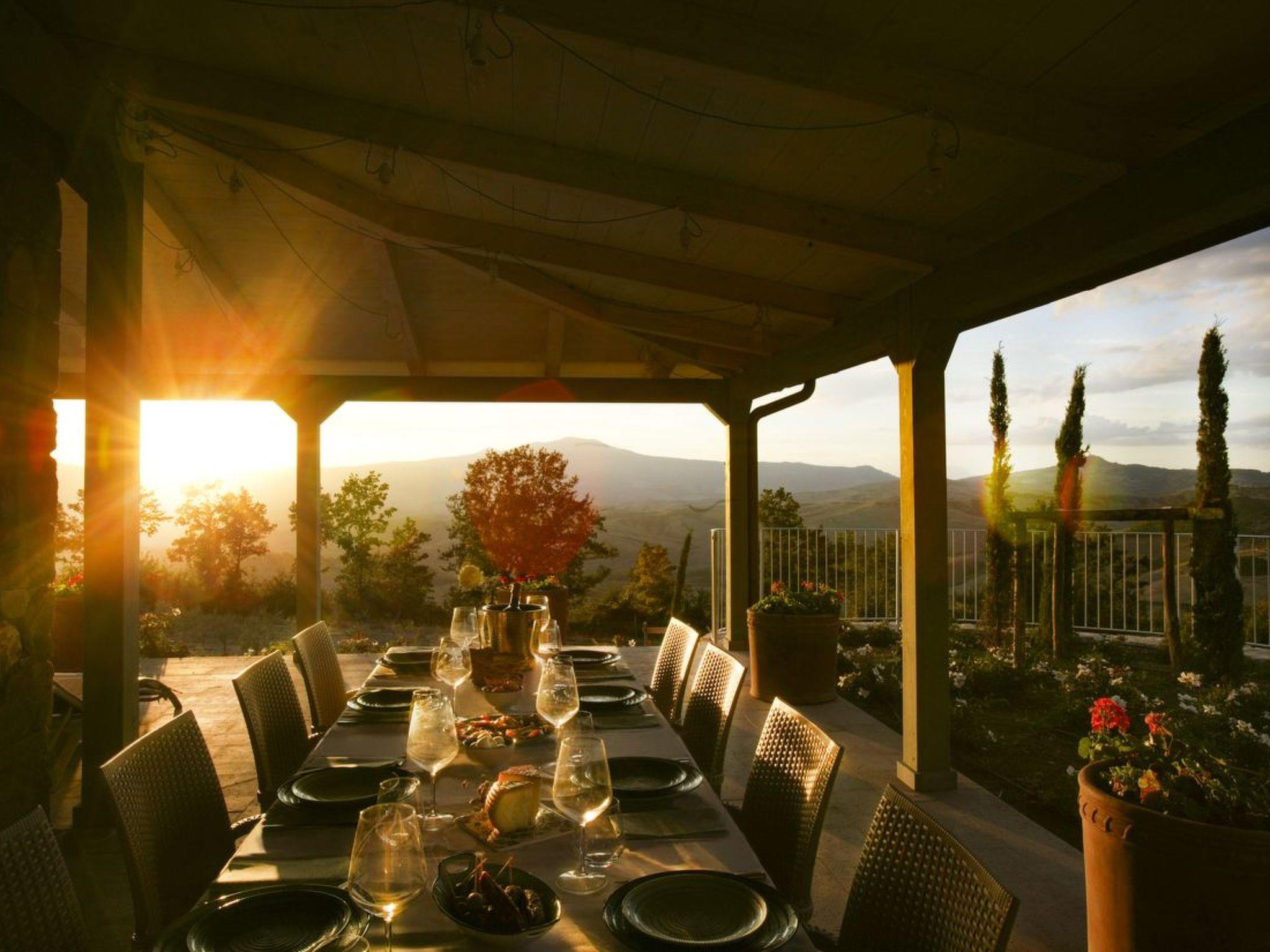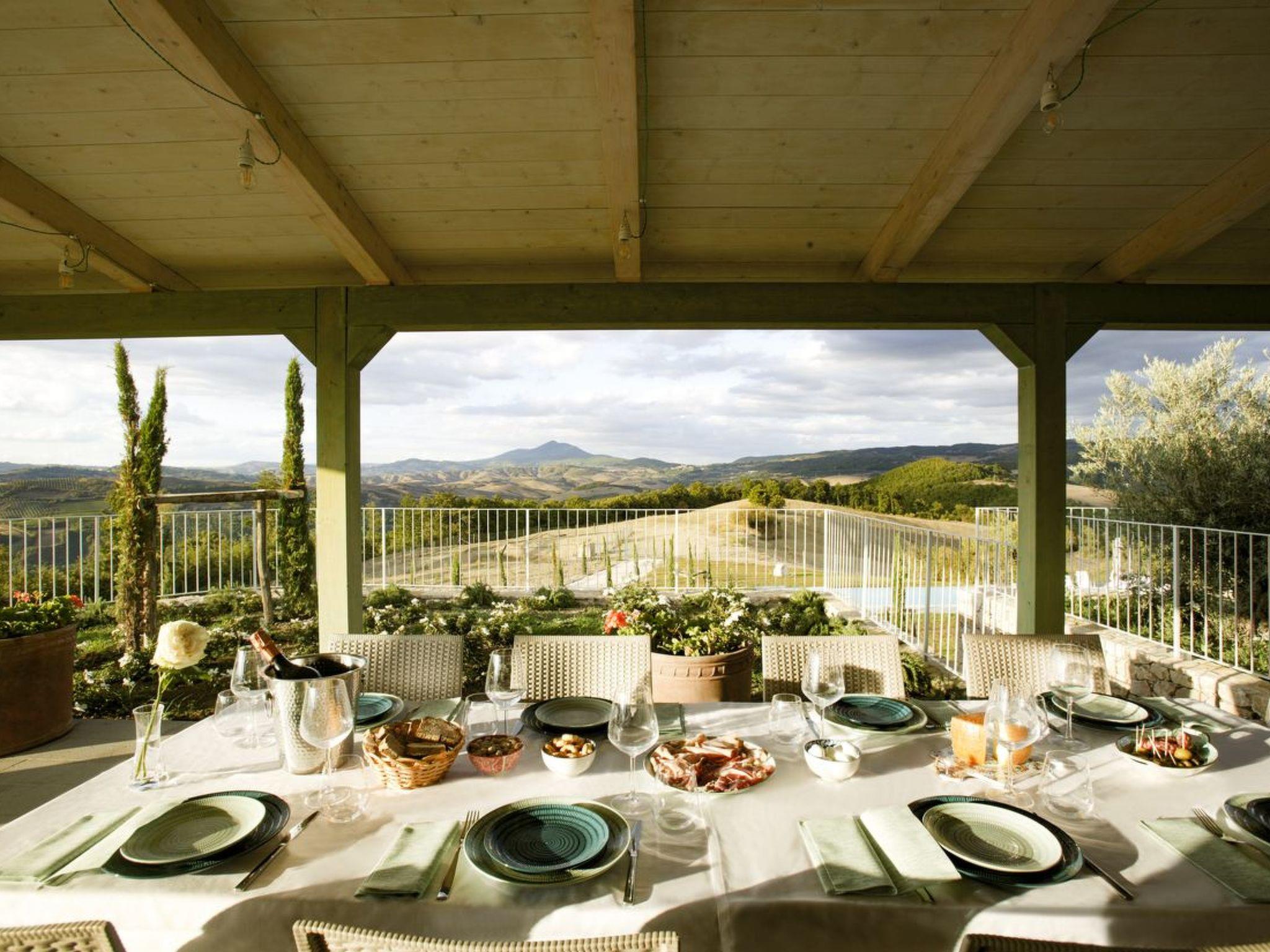 The covered terrace offers a 360-degree view of the countryside, Monte Amiata and typical Tuscan villages.
